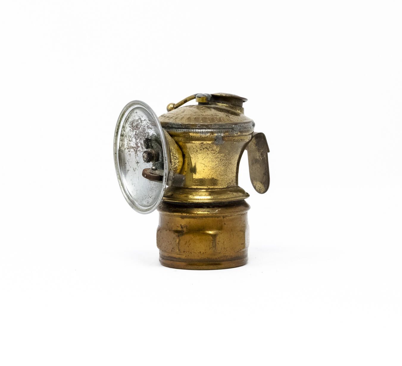 Used for illumination in underground mines. Developed after oil wick lamps to include reflector dish, still an open flame.
