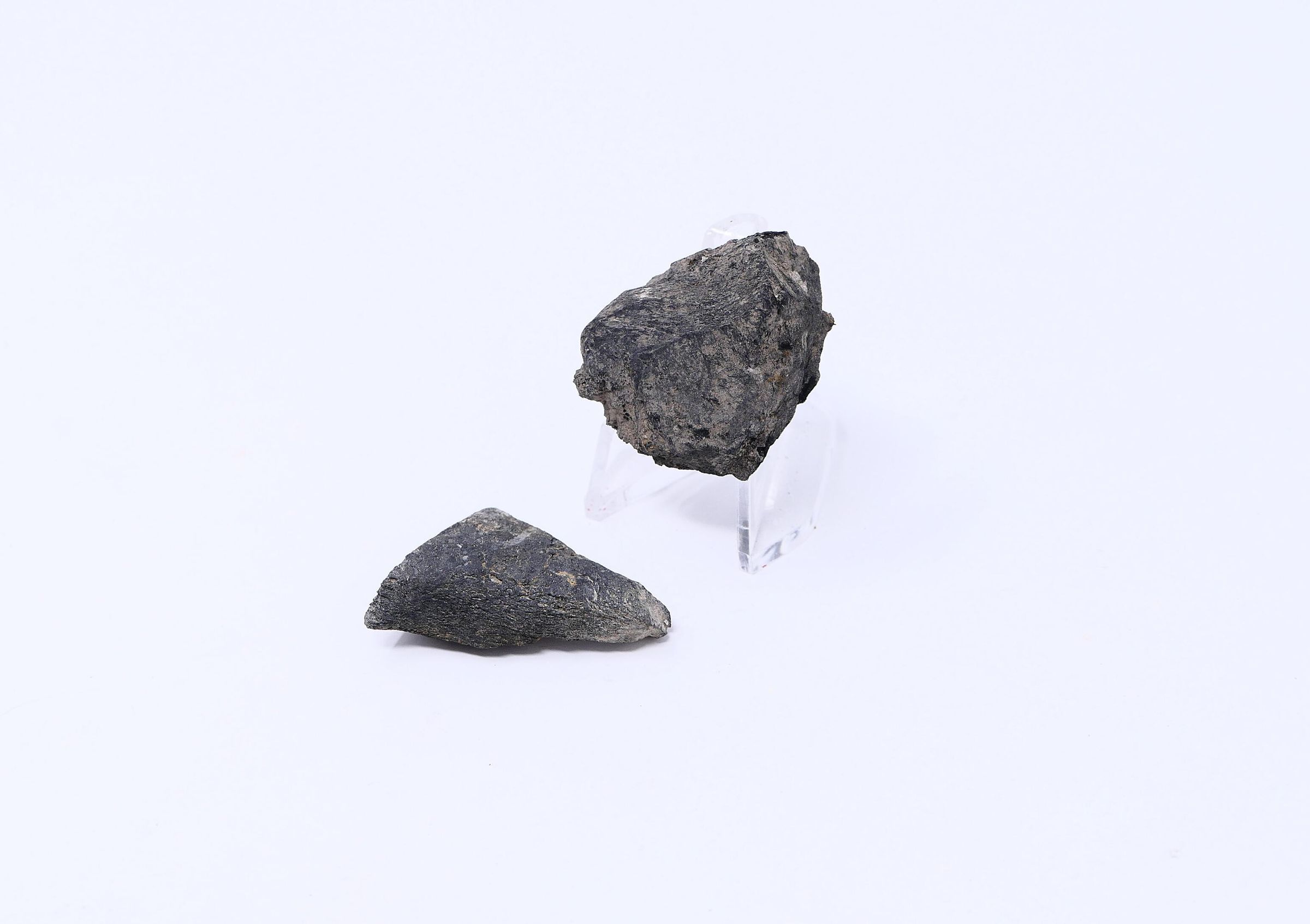 two (2) specimens of an unidentified lightweight, dark-colored stone