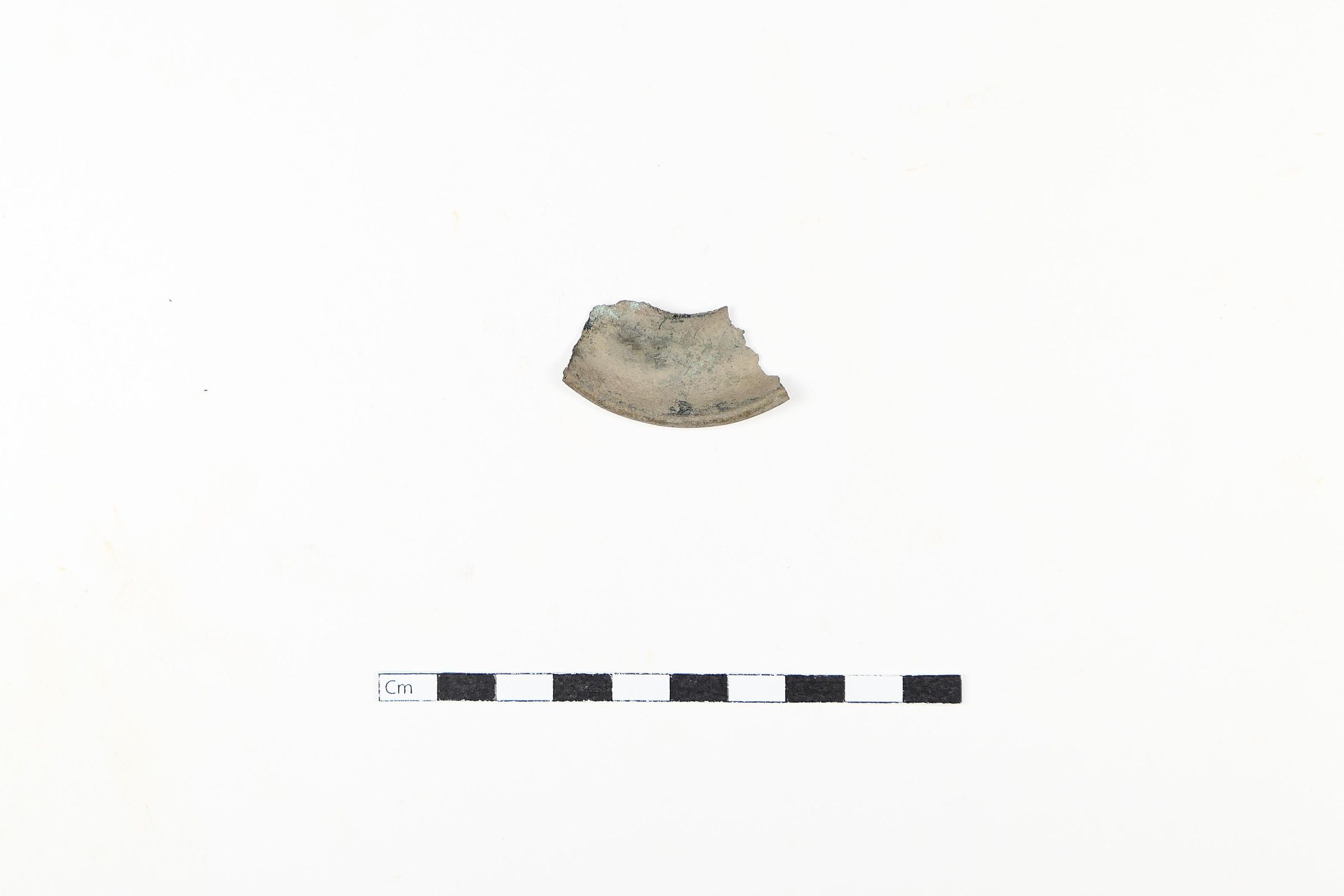 one (1) broken piece of lightweight pressed metal, similar to a miner's headlamp reflectorContext