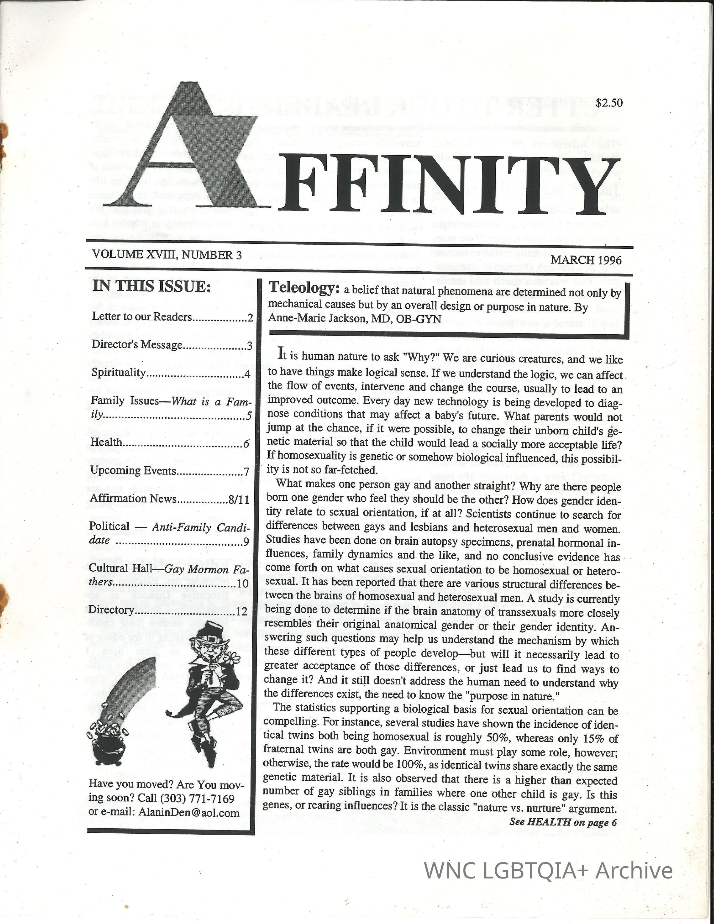 Organizational newsletter of Affirmation for Gay and Lesbian Mormons.12 pages.
