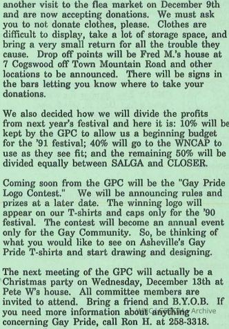 1989 Asheville Gay Pride Festival Committee News, Community Connections