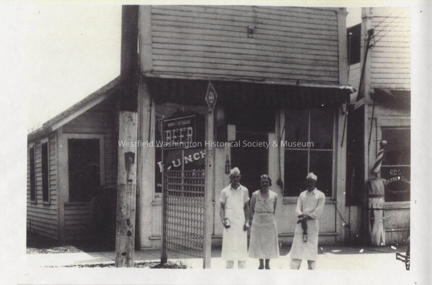 Warrens restaurant Beer sign Doc Ross office next door Location of picture taking what is now 110 North Union Street - at the time it was Main Street and also US31