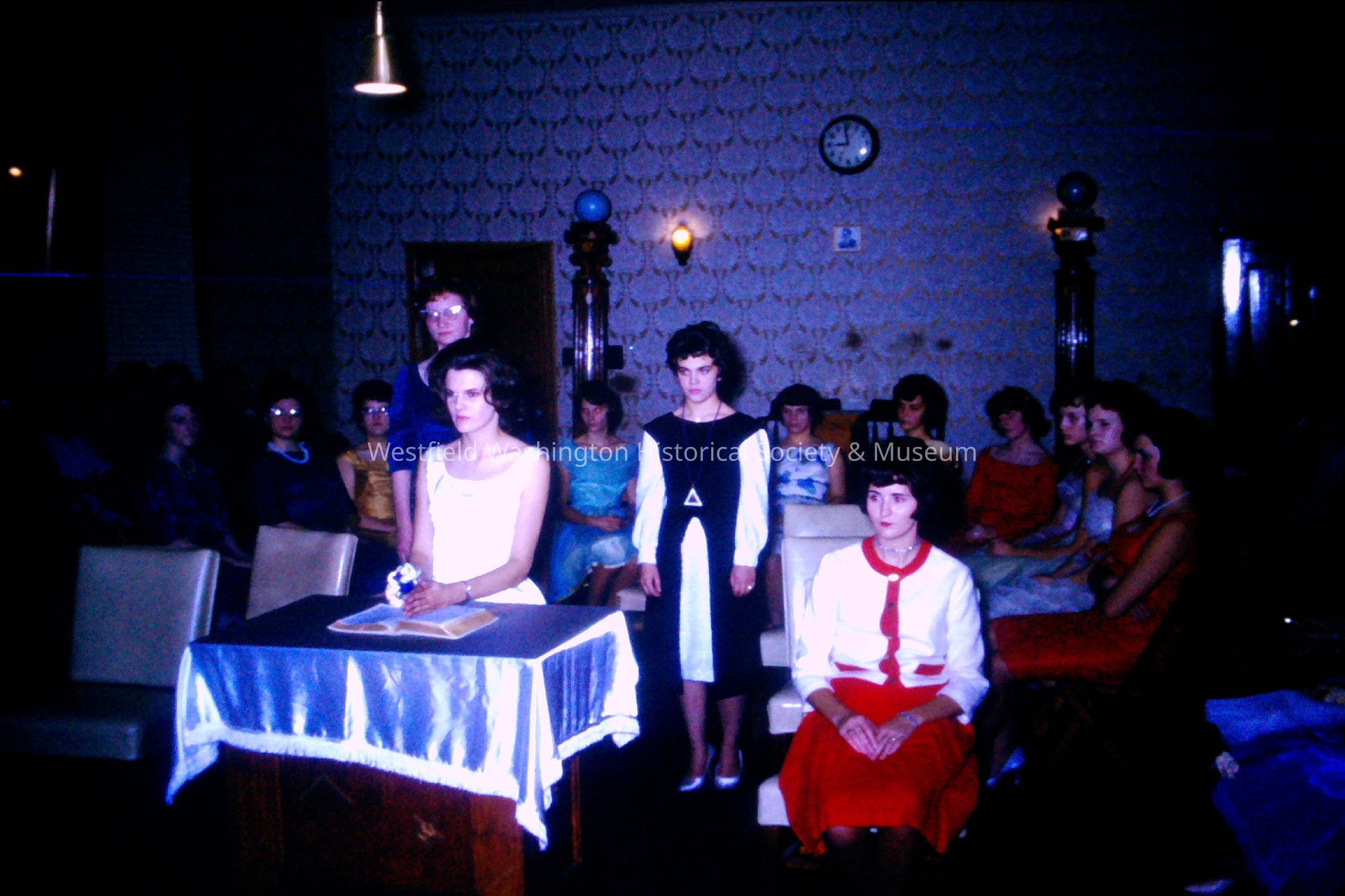 Young women inside during a ceremony. Might be in the Masonic lodge? Might be same date as 2021.2.1