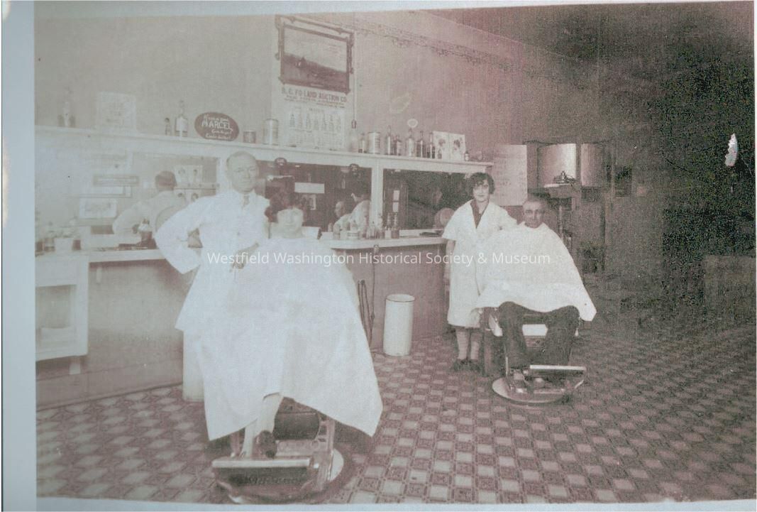 Mary Greene (nee Horton) in Barbershop. She was the first female barber in Westfield (maybe Indiana, need to check)