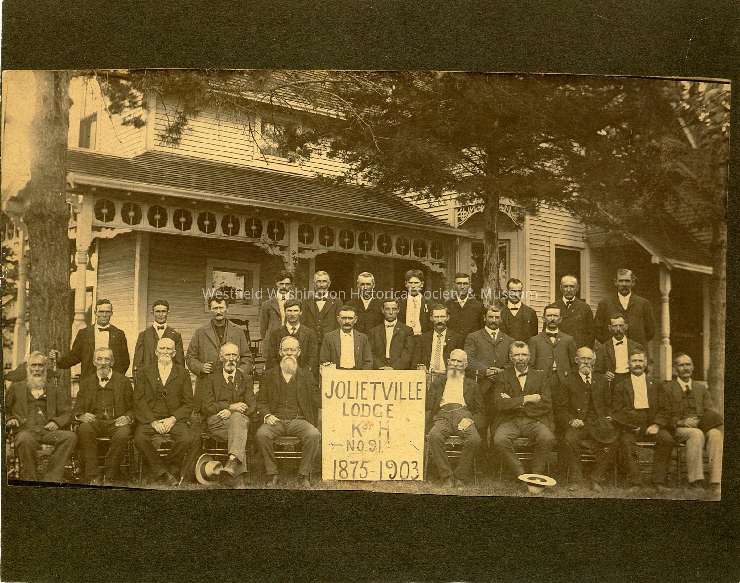 Jolietville Lodge K of H No 91 1875 - 1903 Text in back R to L Wesley B Riggsbee 1 Second Row from Bottom 2 Arthur Stanbrough R to L second row Knights of Honor Inc. Co