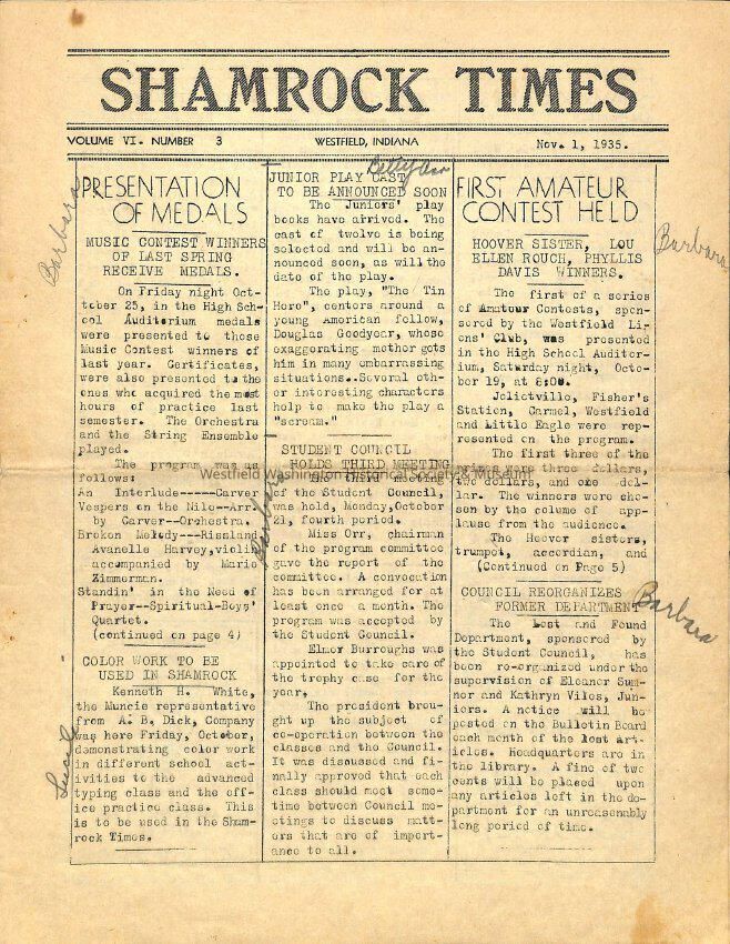 Shamrock Times Volume VI Number 3. Nov 1, 1935