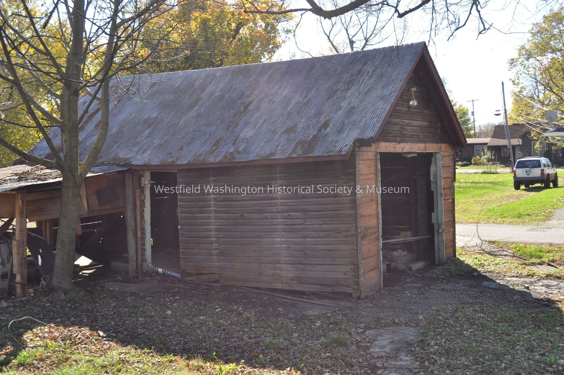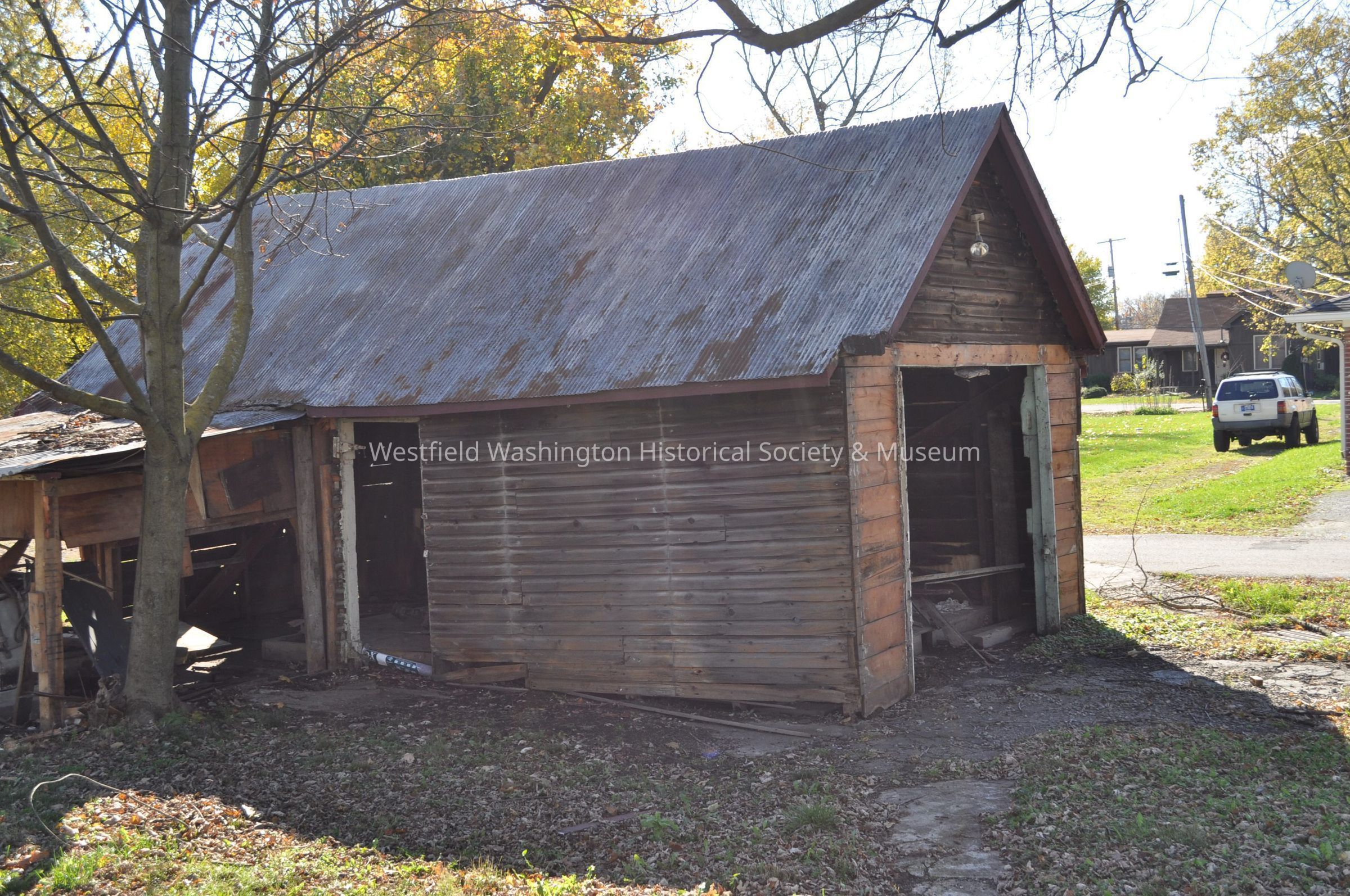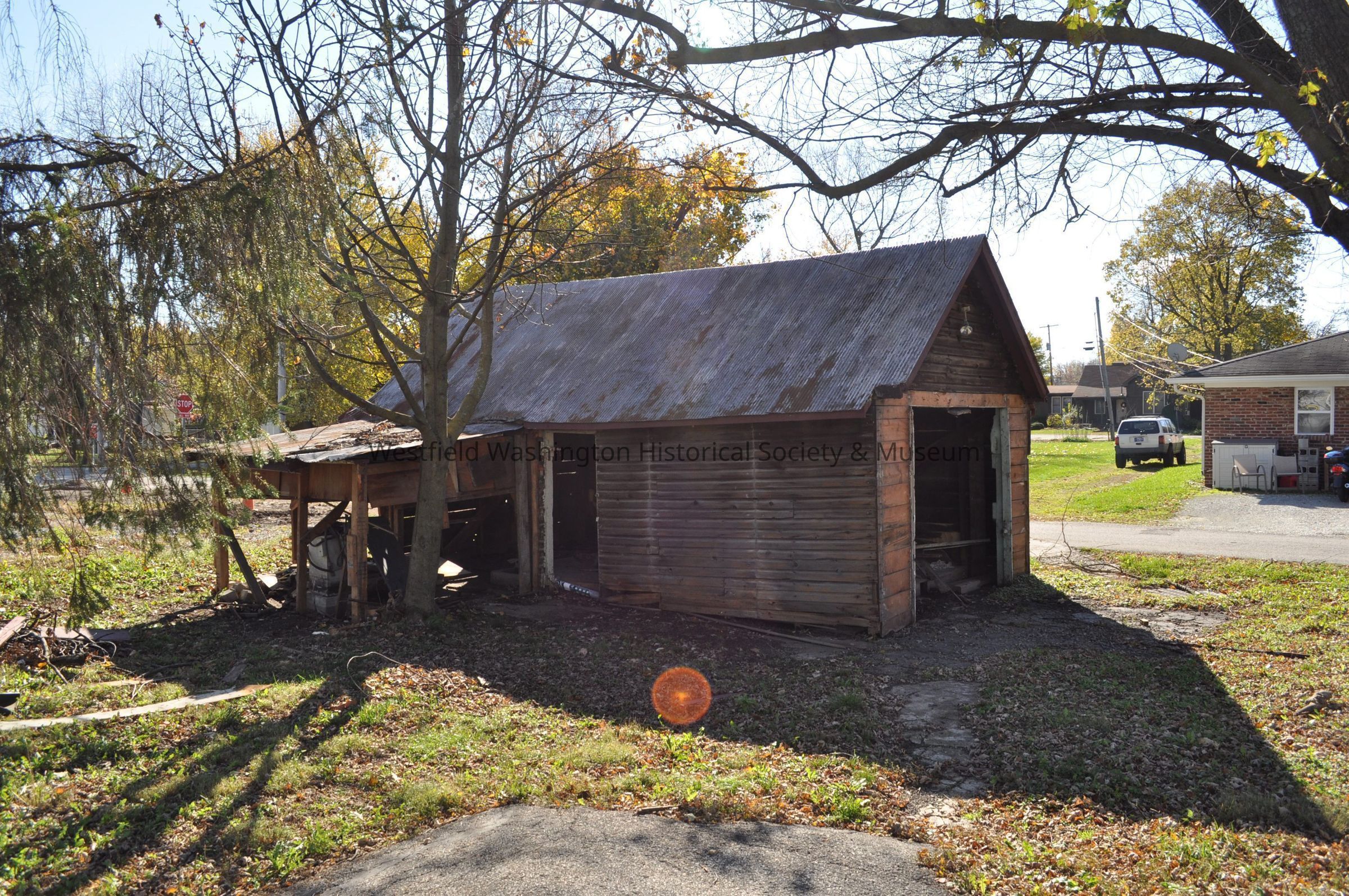 Shed behind 421 West Main Street building before it was demolished. Also visible 122 Maple Street south of it