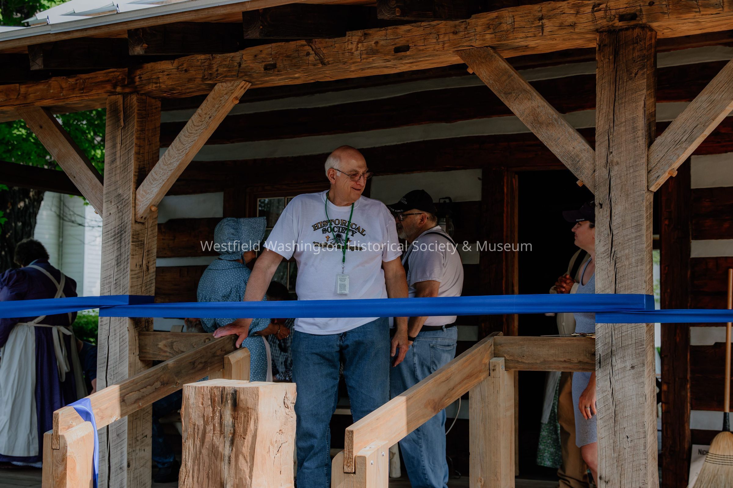 1835 Barker Family Log Cabin front porch before ribbon cutting
