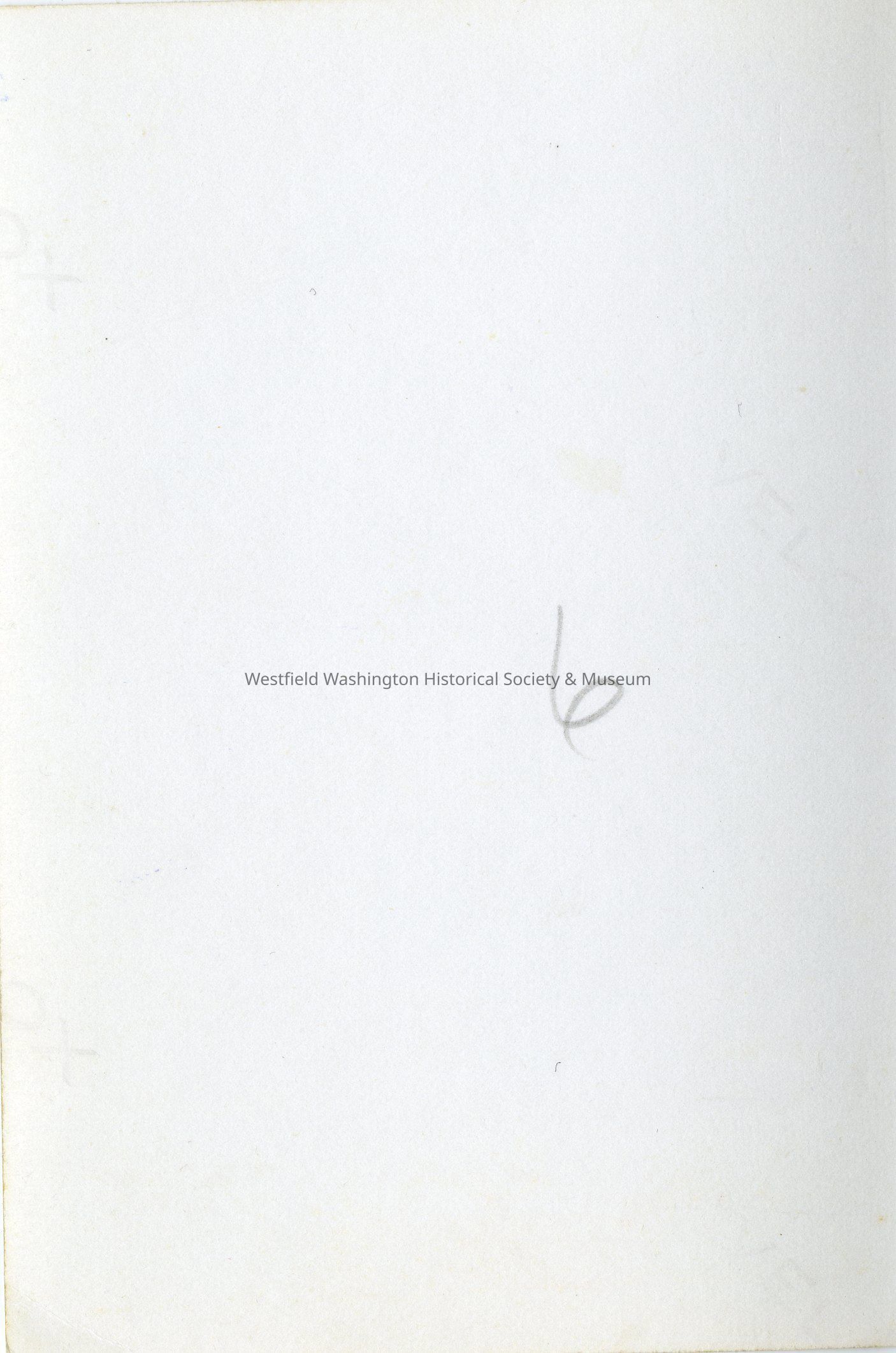A black and white photograph of an unidentified man, who was part of the Wheeler Family, standing by a black cow in front of a frame barn. The handwritten number on the back is 6.