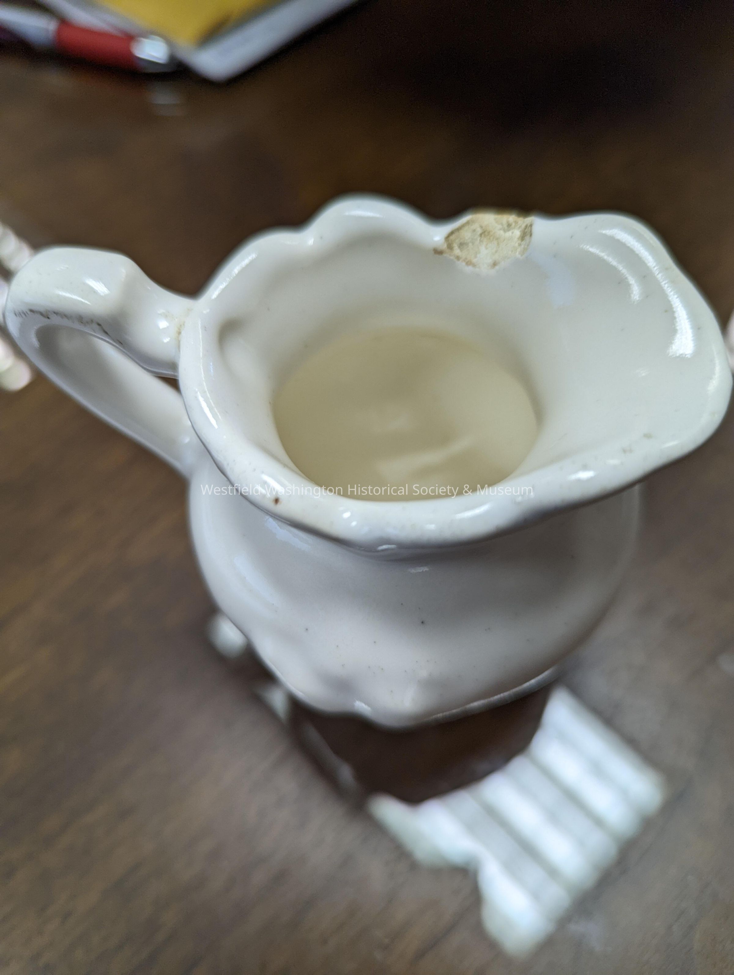 1800s handmade pottery with white glaze creamerEntry/Object ID