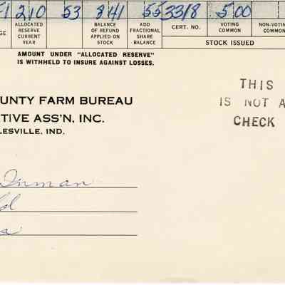 Hamilton County Farm Bureau Stock Certificate for Byford InmanEntry/Object ID