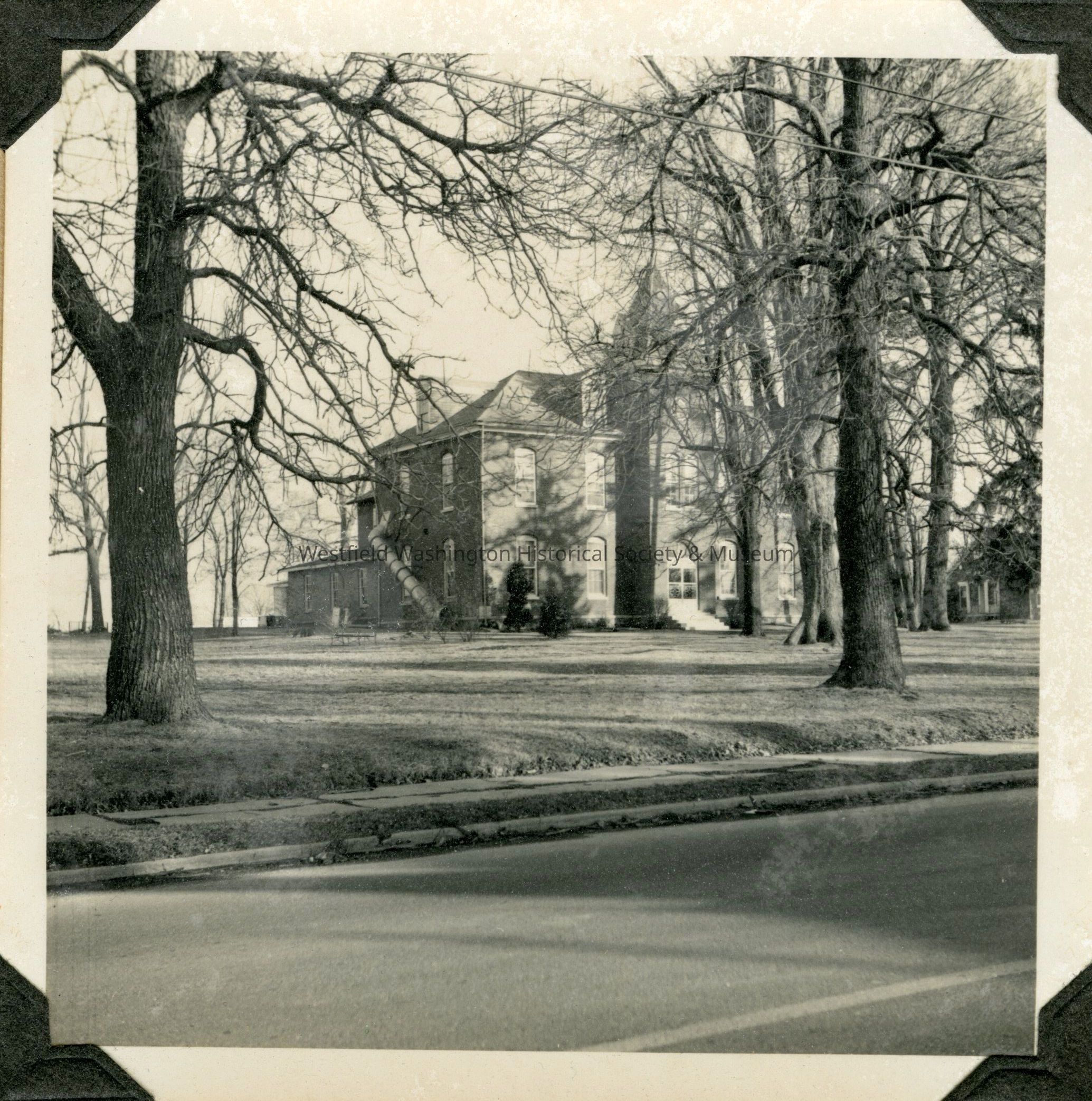 A black and white photograph of the Union Bible Seminary building at S. Union Street in Westfield, taken around 1967. This location is numbered 46 on the 1967 time capsule list and maps (see record 2025.19.1).