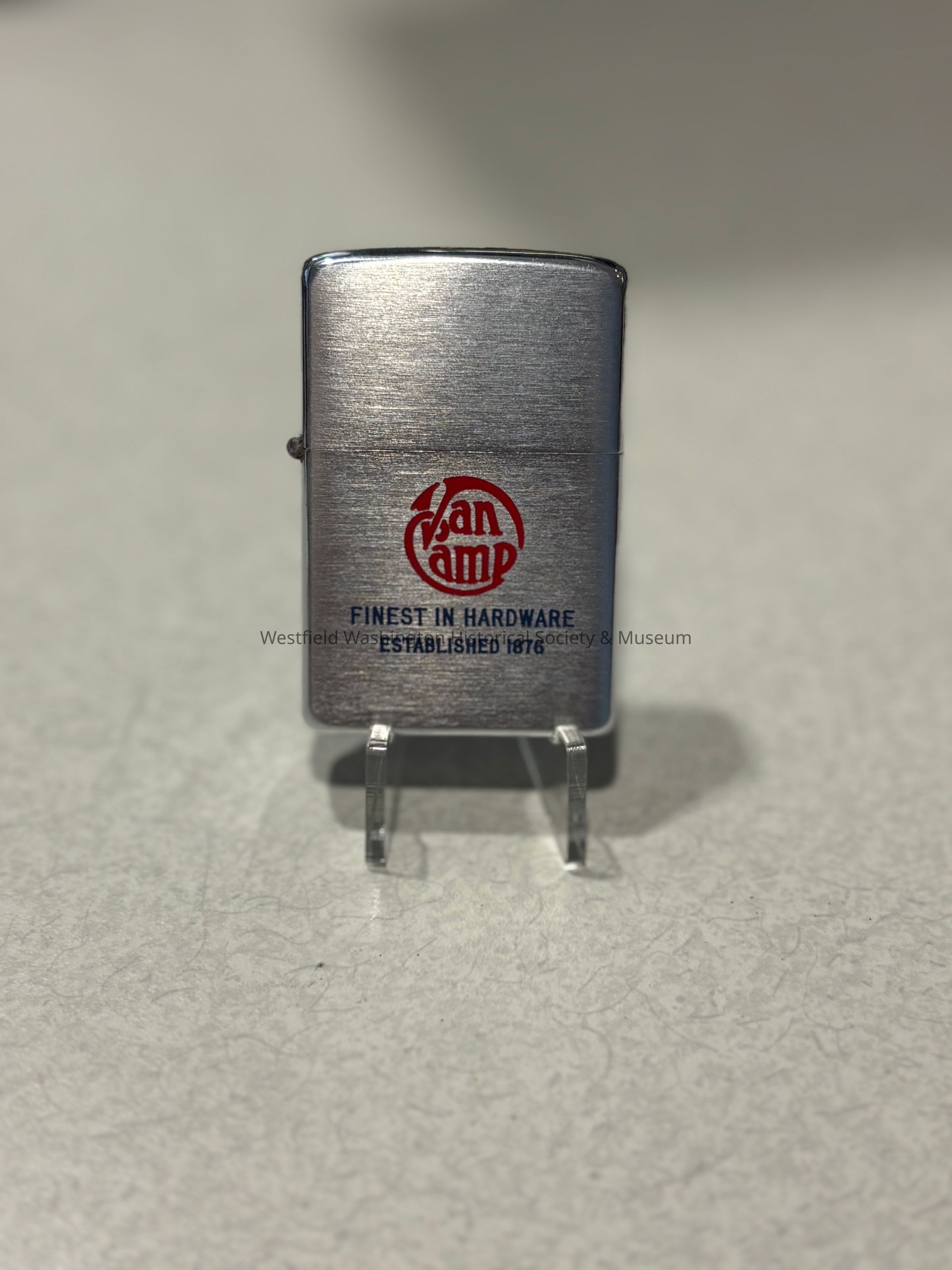 A Van Camp branded Zippo lighter. Comes with a clear stand for it to sit on.Acquisition