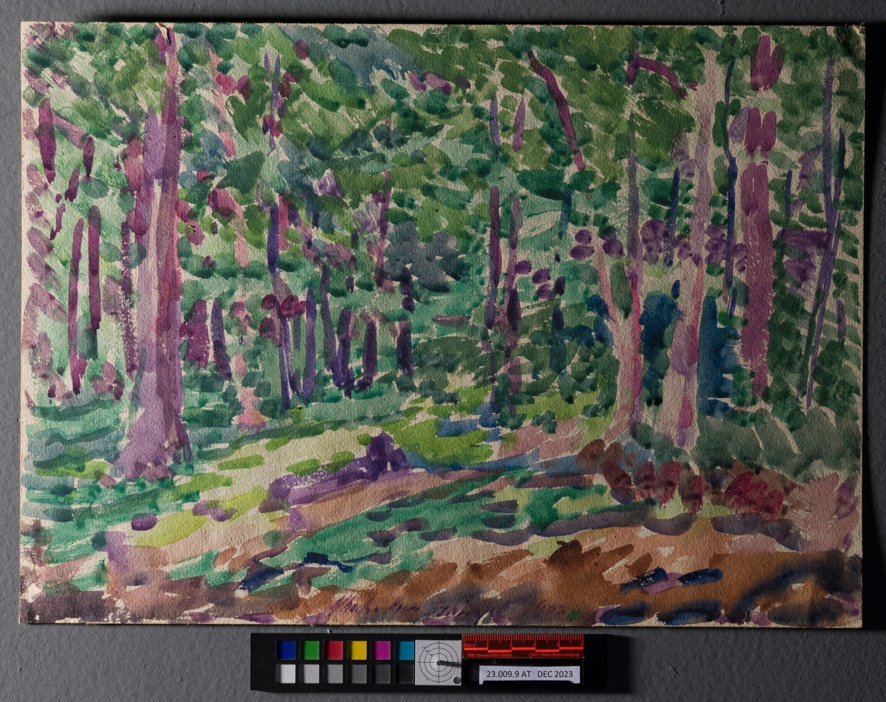 [Forest with purple and green trees]