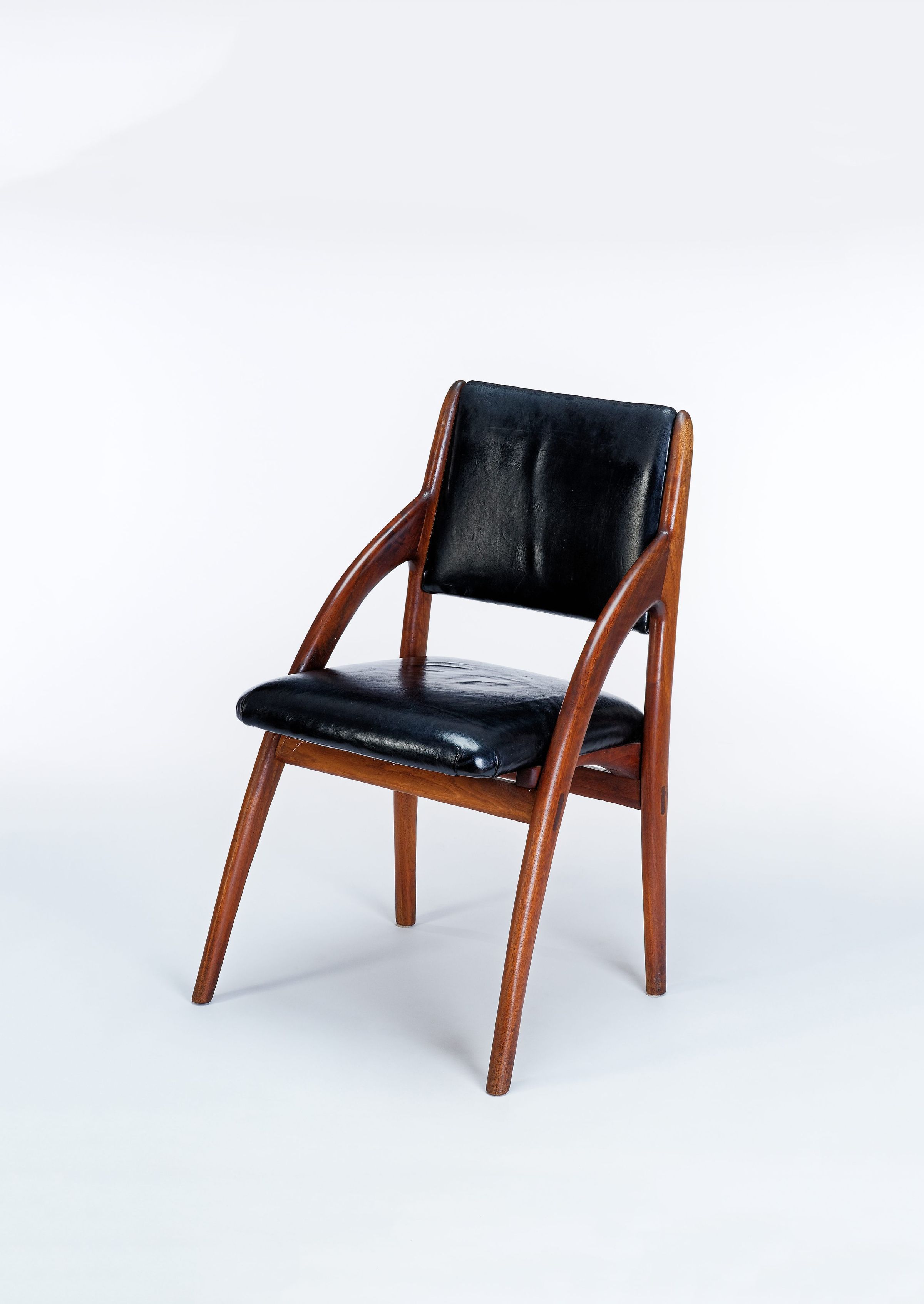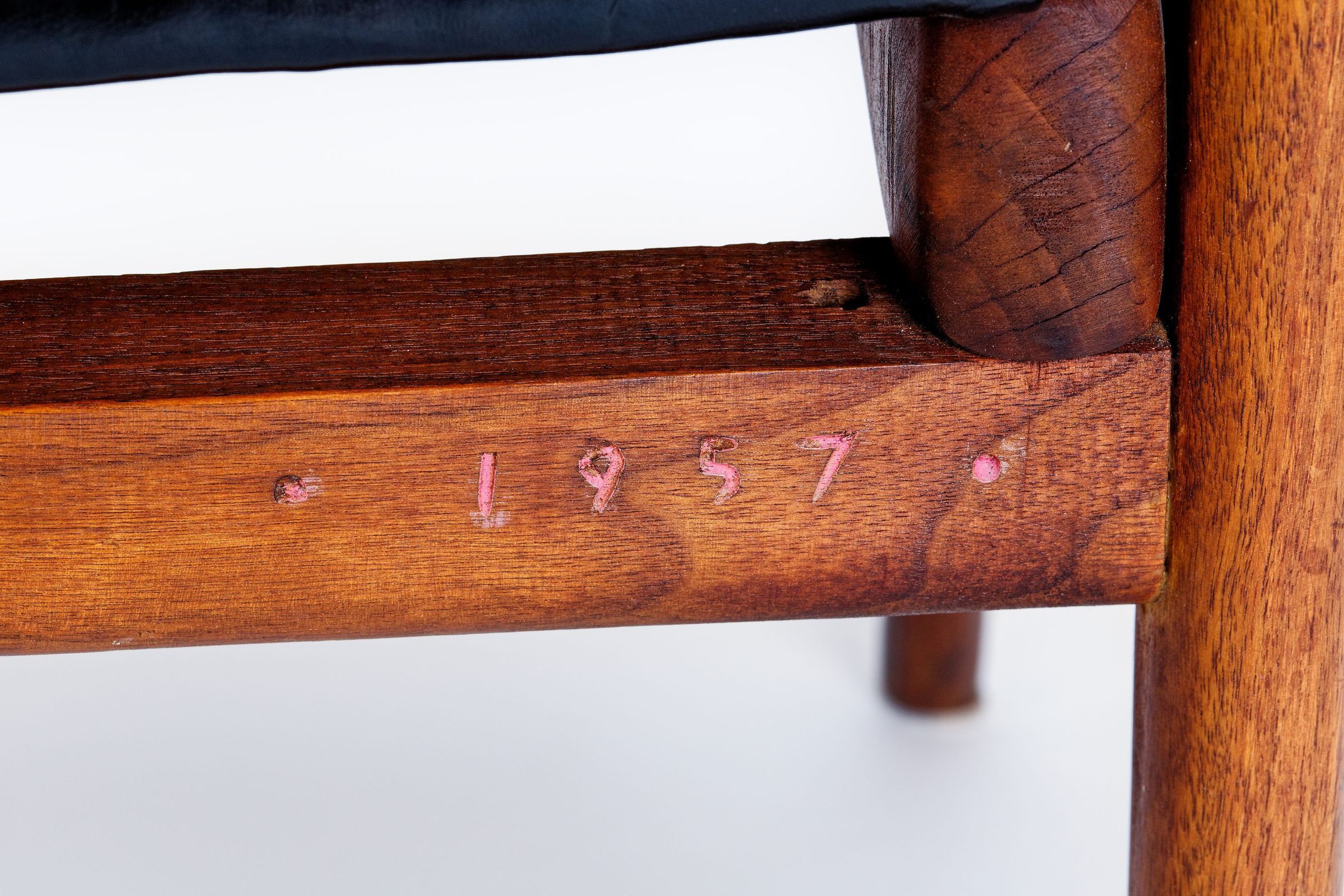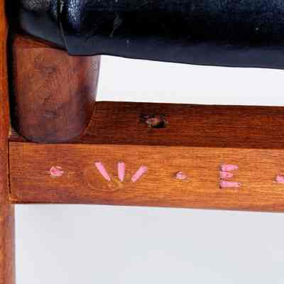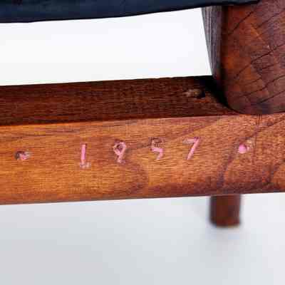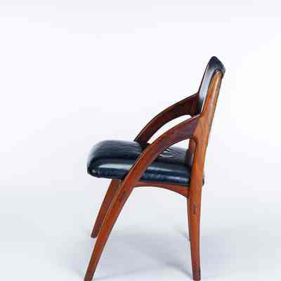 This version of the S-K Chair was produced over a decade after the original commission; while it is still constructed from walnut, this new model swaps the red leather upholstery of the original for black Naugahyde. The impact of the S-K Chair can be seen in the branched construction of other studio furniture makers, most notably Arthur Espenet Carpenter’s iconic Wishbone Chair.
