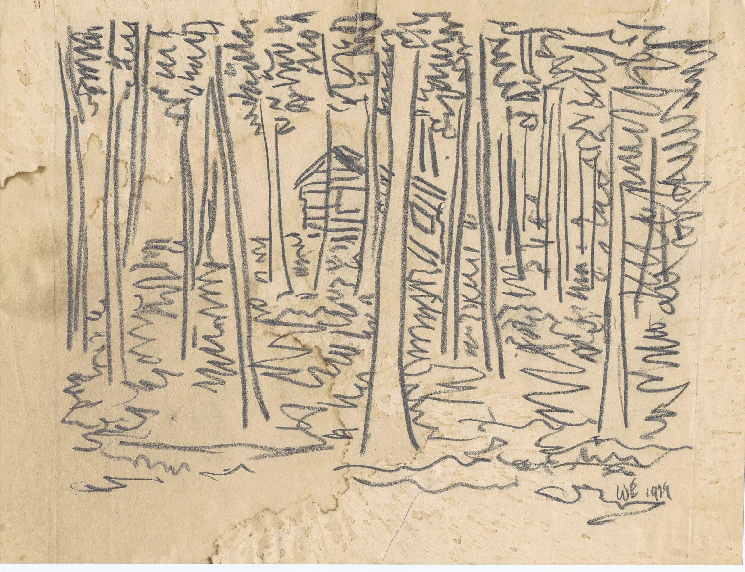 [Sketch of a cabin in the woods]
