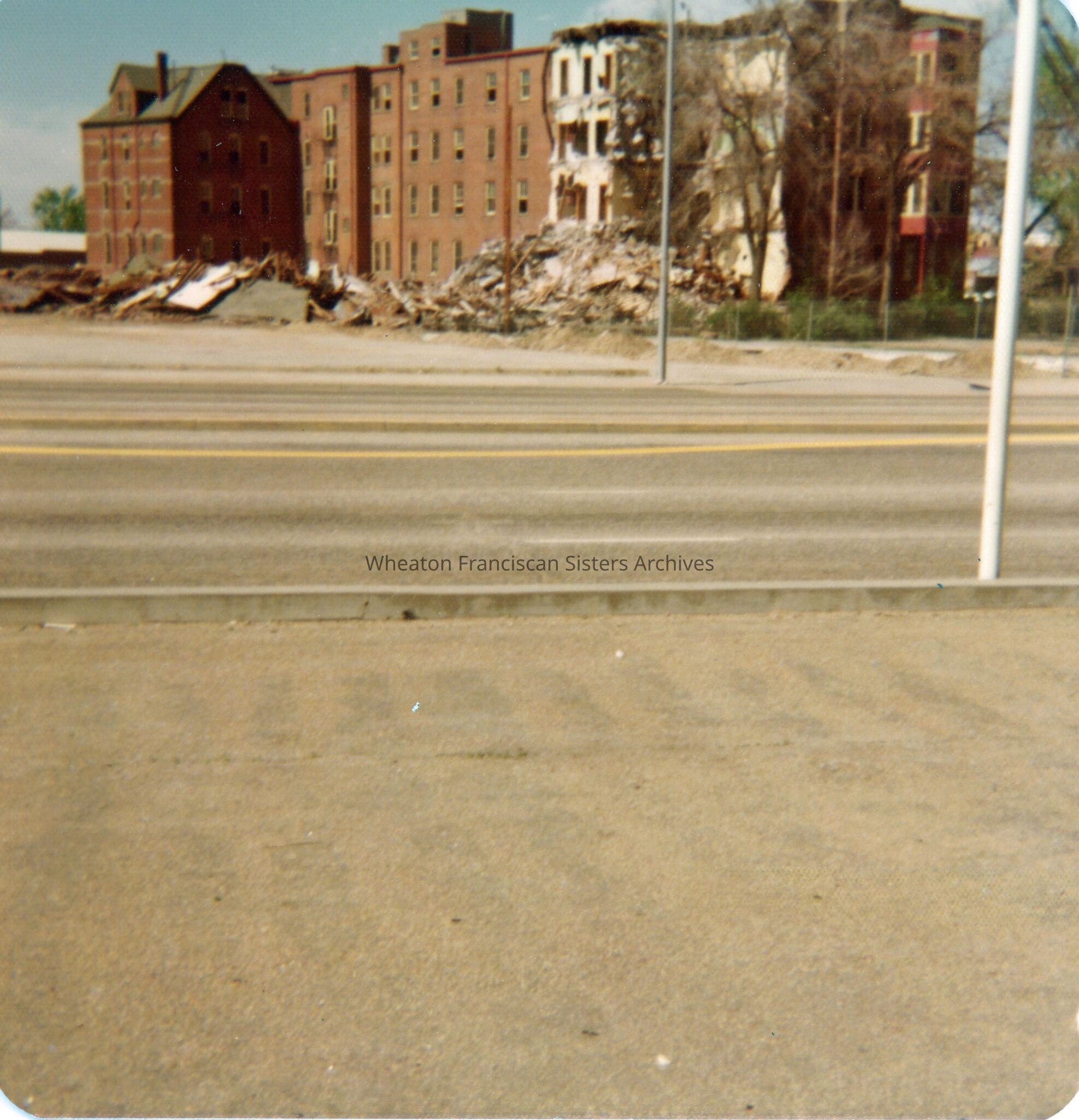The St. Rose Residence located at 952 10th Street in Denver, Colorado. A home for young working women, this image was taken during the building's demolition. At different times, this location was known as St. Clara's Convent, St. Rose's Convent, St. Rosa's Home and was once the site of St. Clara's Orphanage.
