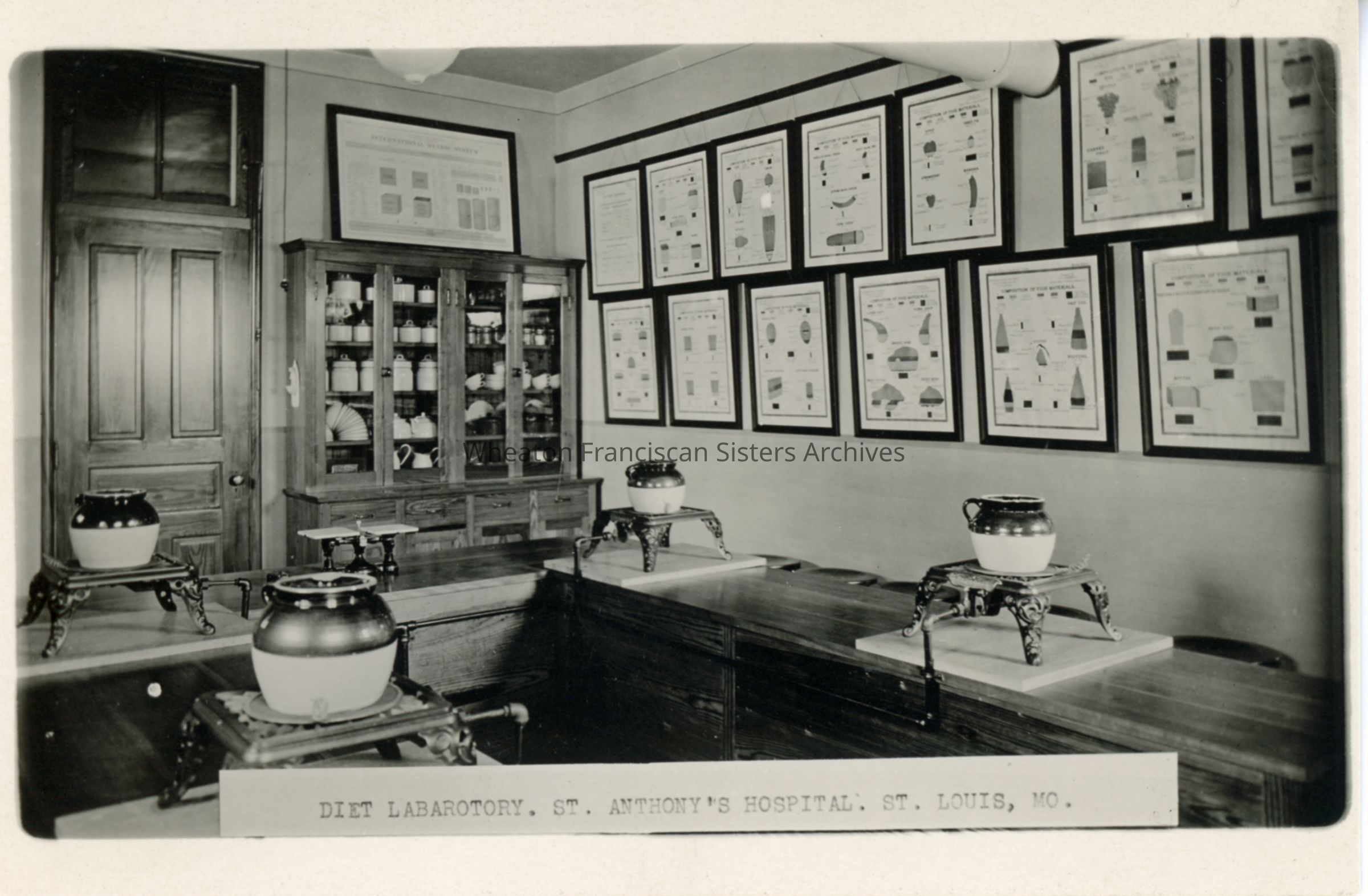 Postcard of the diet laboratory in St. Anthony’s Hospital located at 3520 Chippewa Street in St. Louis, Missouri.