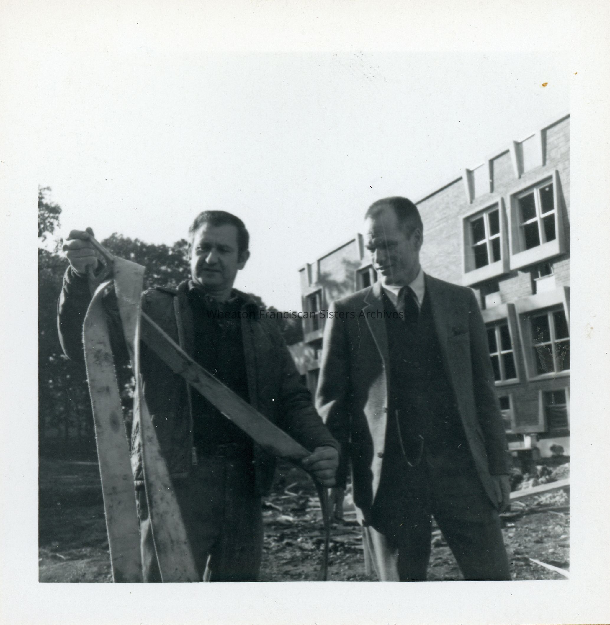 Construction of Marianjoy Rehabilitation Hospital in Wheaton, Illinois. The man on the right is Administrator William J. Daly.