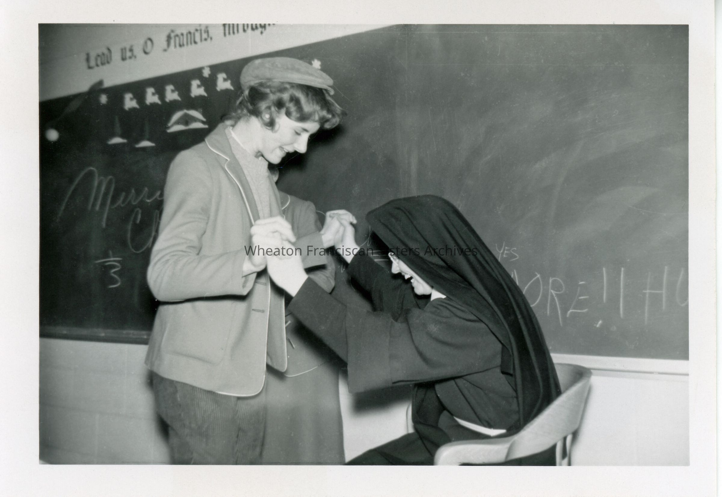 St. Francis High School located at 2130 West Roosevelt Road in Wheaton, Illinois. This image features Sister Florence (Jude) Roling with a student.