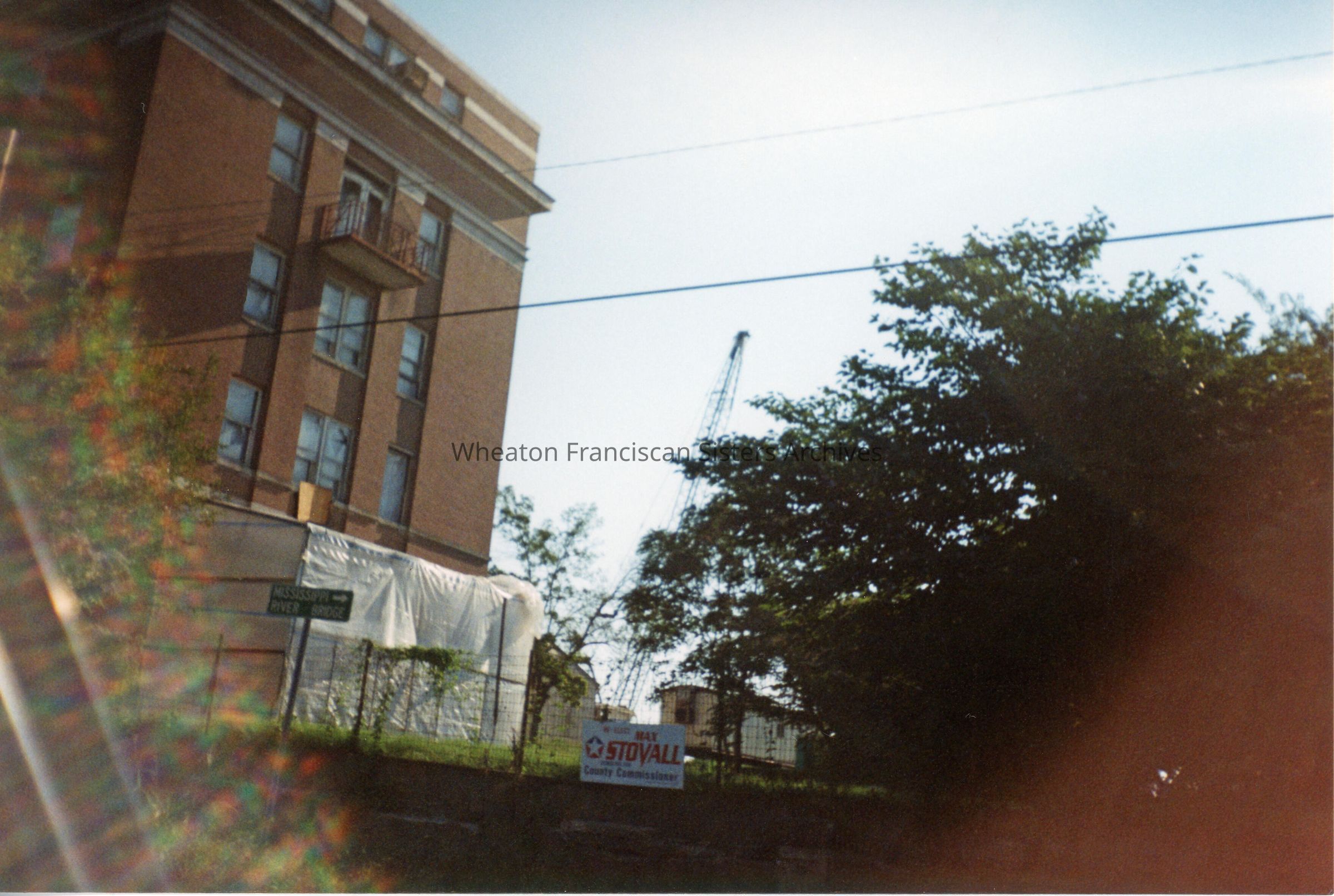 Demolition of St. Francis Hospital located at 825 Good Hope Street in Cape Girardeau, Missouri. Opened in 1914, this hospital replaced an older structure located at Sprigg and Williams Streets. St. Francis remained here until 1976 and the building was demolished in 2000. Affordable housing now occupies the site.