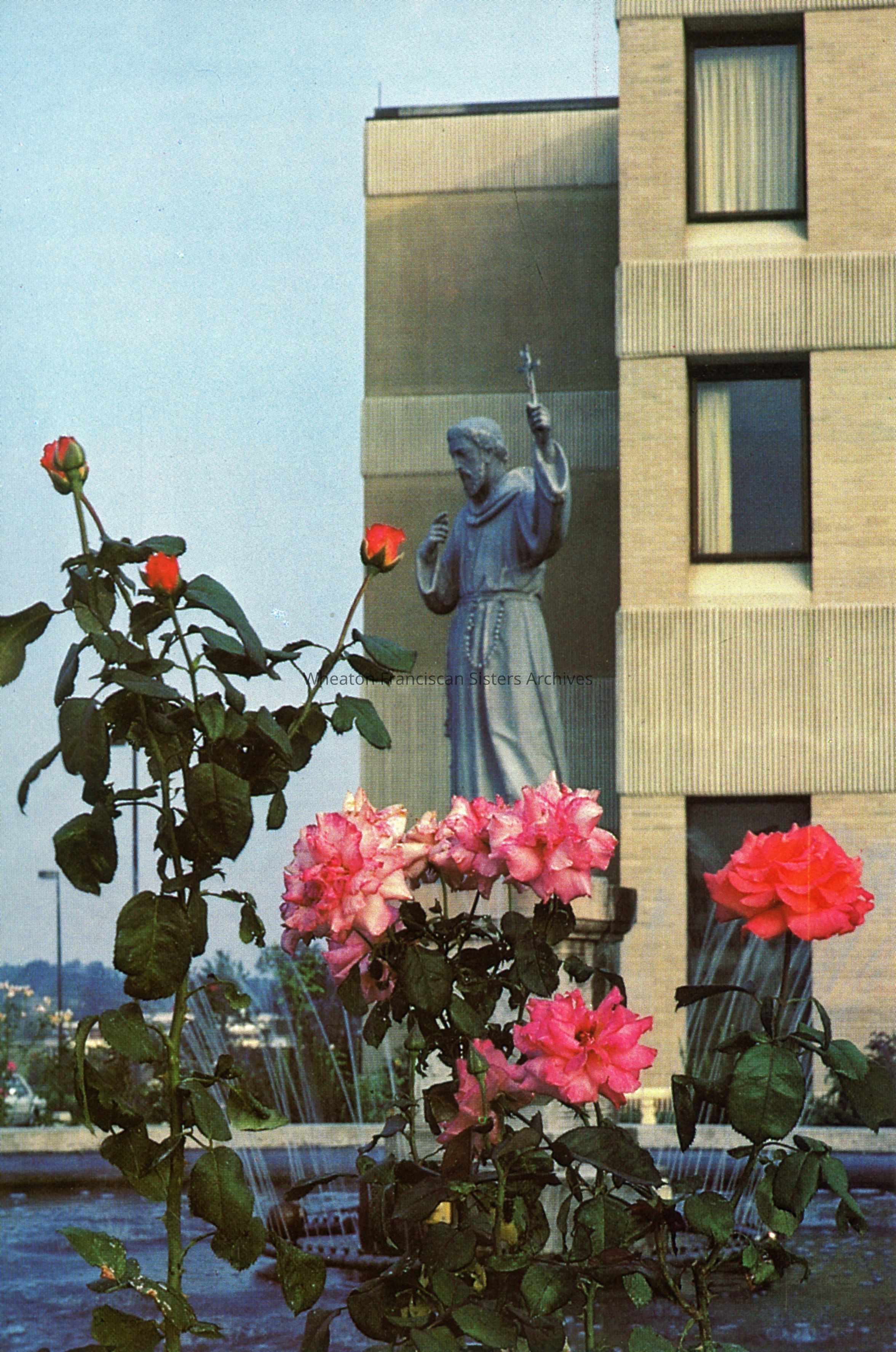 Postcard of St. Francis Medical Center at 211 St. Francis Drive in Cape Girardeau, Missouri. Opened in 1976, the medical center replaced an older hospital located at 325 Good Hope Street. There is a handwritten message on the back from Sister Gertrude (Virgilia) Beikler to Sister Genevieve (Jolenta) Lualdi.