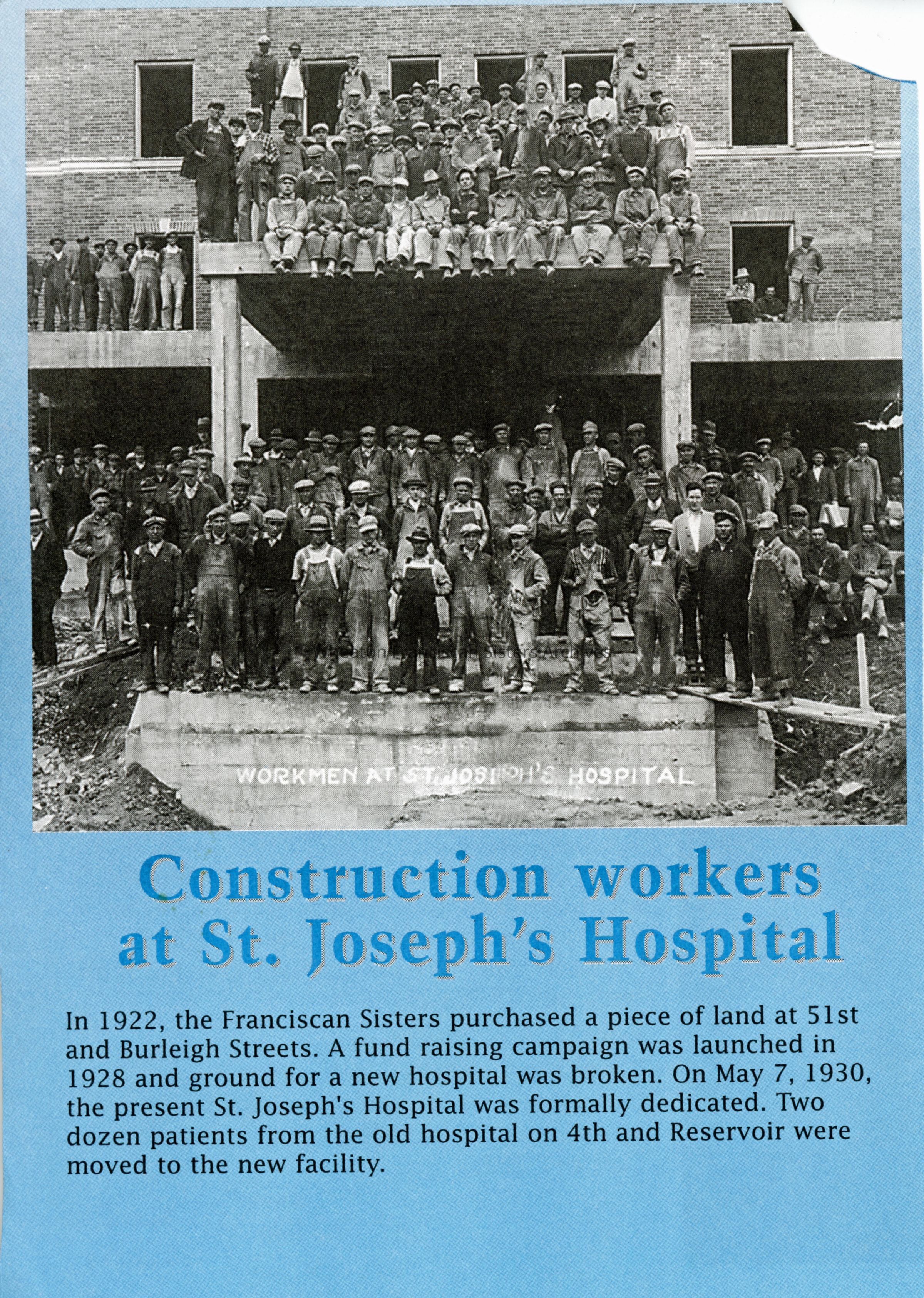 Construction workers at St. Joseph's Hospital located at 5000 West Chambers Street in Milwaukee, Wisconsin.