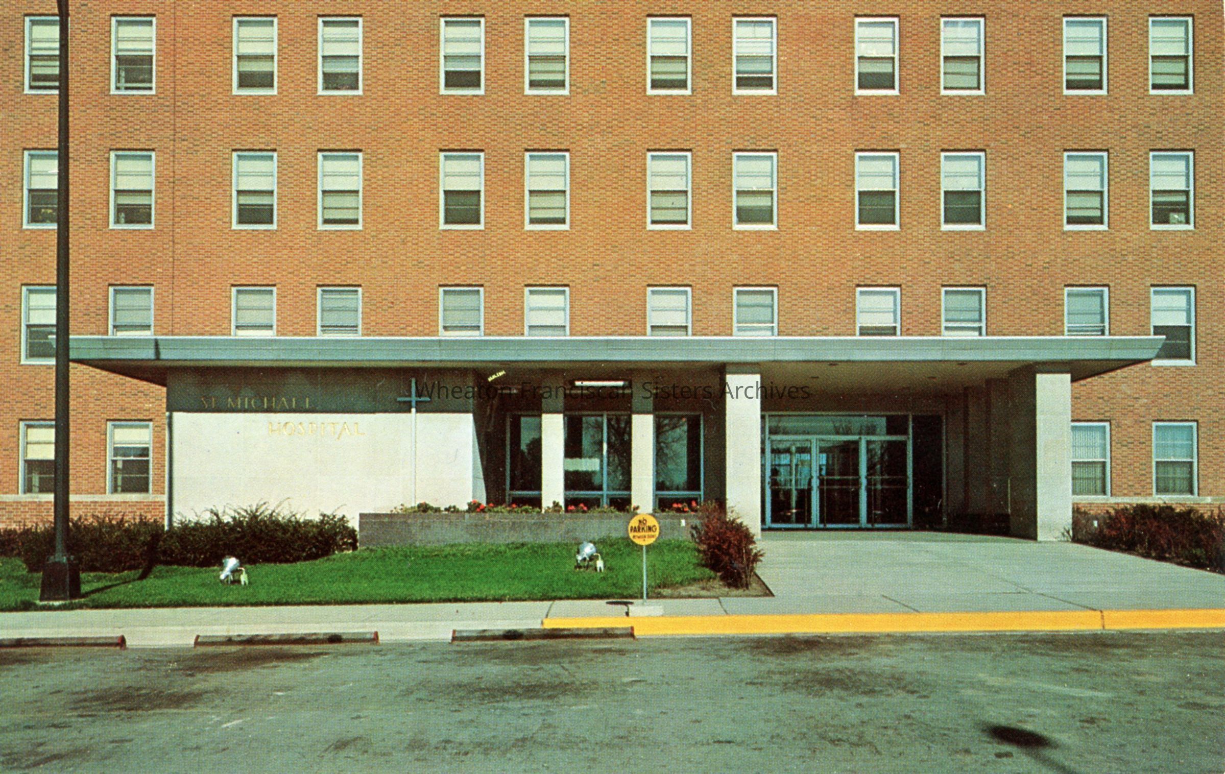 Postcard of St. Michael's Hospital at 2400 West Villard Avenue in Milwaukee, Wisconsin. This image features the front entrance.