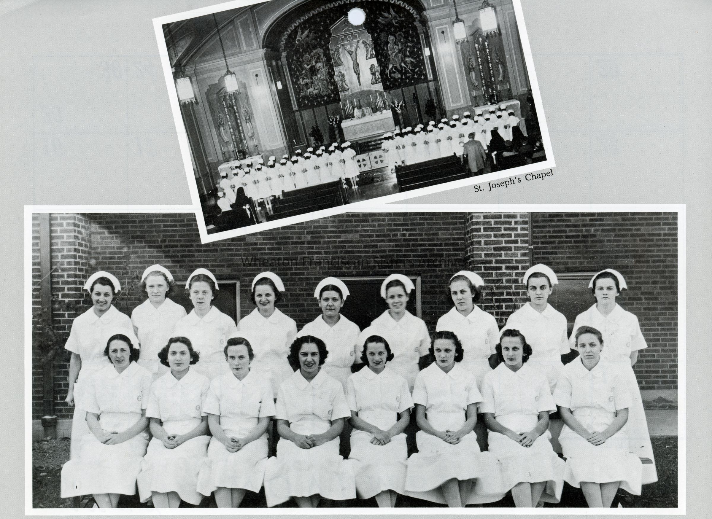 The Marquette University College of Nursing, previously the St. Joseph's Hospital School of Nursing. This image features the graduating class of 1940 and St. Joseph's Chapel.
