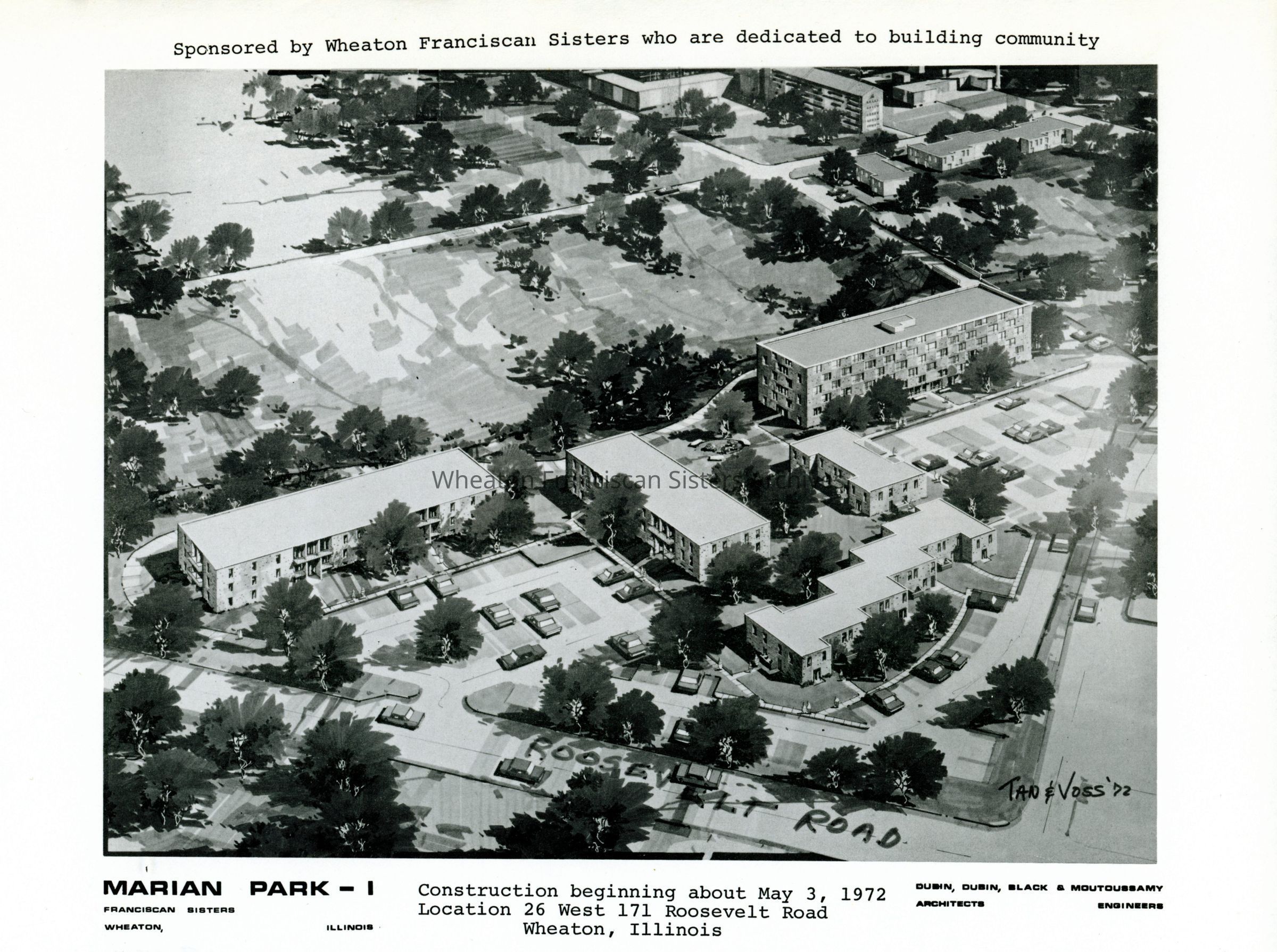 Situated near the Wheaton Franciscan Sisters Campus, Marian Park opened in 1973. Created as affordable housing for seniors and families, the complex offers more than two hundred apartments. The Franciscan Sisters sponsored the ministry until a transfer to Mercy Housing in 2016.Context
