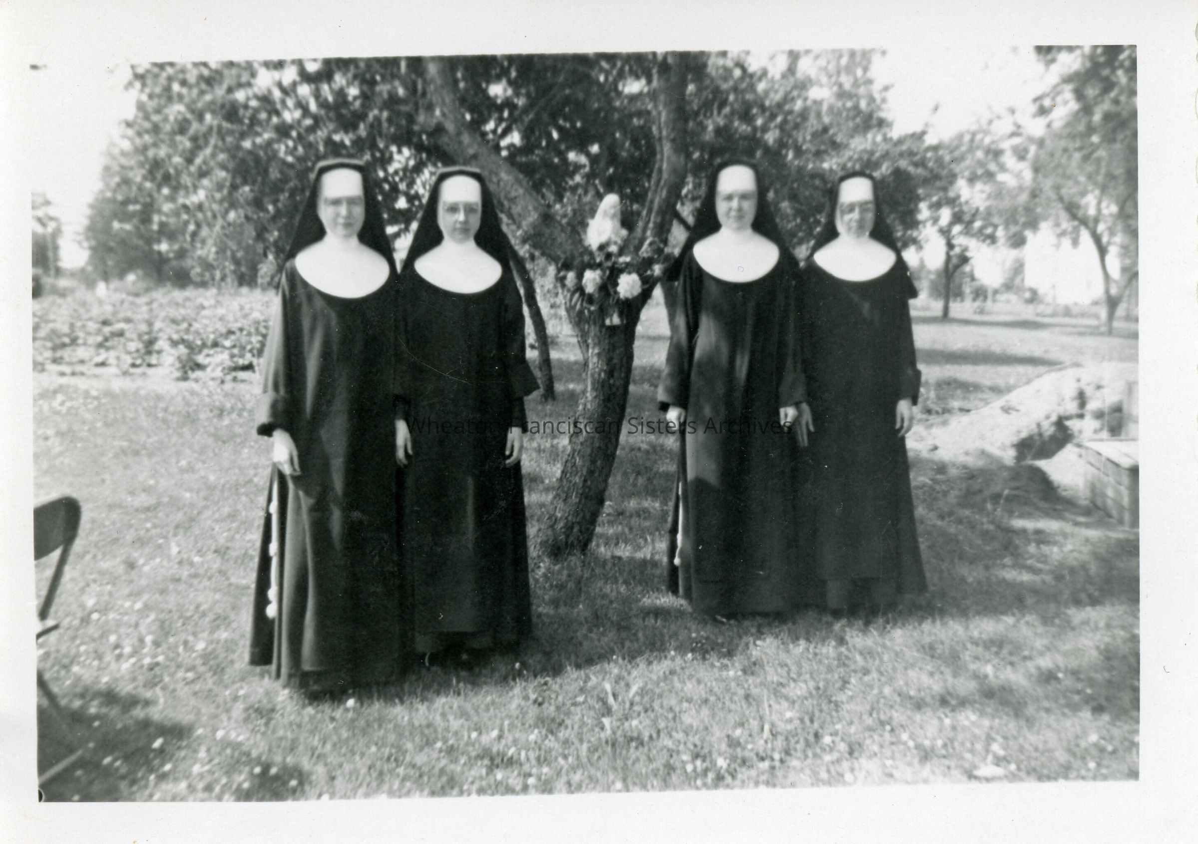 Sisters gathered in Raymond, Iowa. From left to right are Sister Martha (Marian) Streveler, Sister Virginia (Dolorine/Virginia Mary) Barta, Sister Theresa (Pauline) Langfield and Sister Helen (Josine) Doreing.