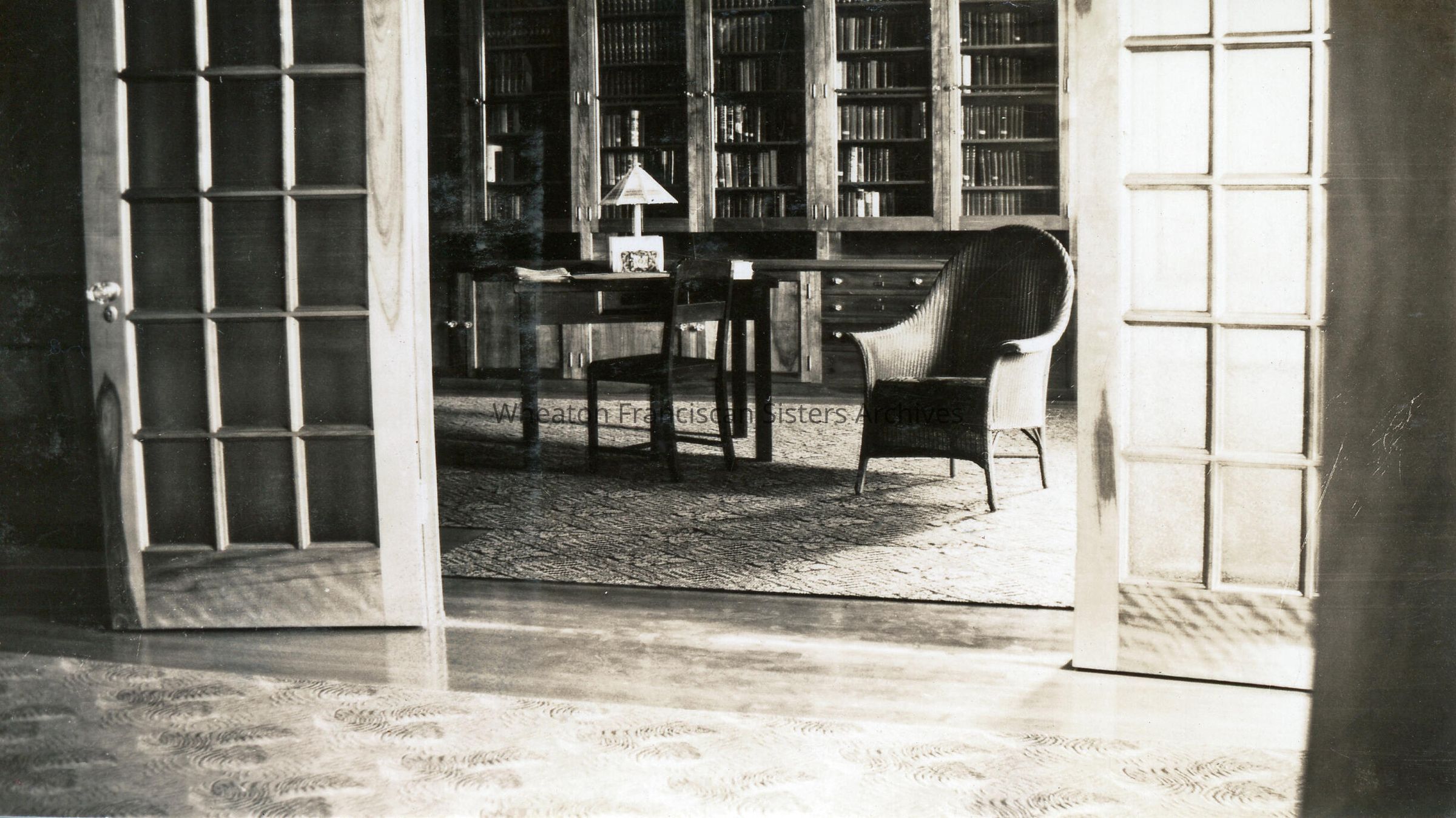 St. Rose Residence located at 952 10th Street in Denver, Colorado. A home for young working women, this image features the library. At different times, this location was known as St. Clara's Convent, St. Rose's Convent, St. Rosa's Home and was once the site of St. Clara's Orphanage.