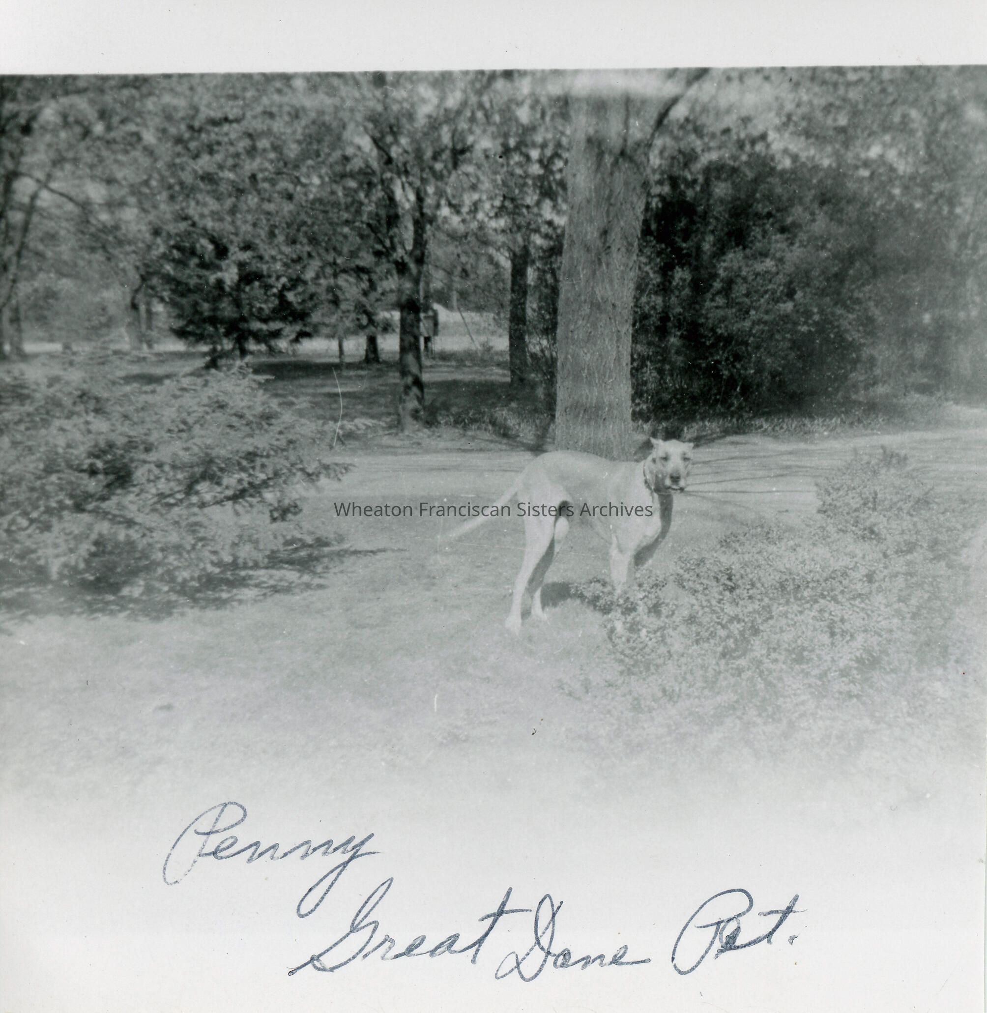 The Wheaton Franciscan Campus located in Wheaton, Illinois. The dog in the photo was a Great Dane named Penny.