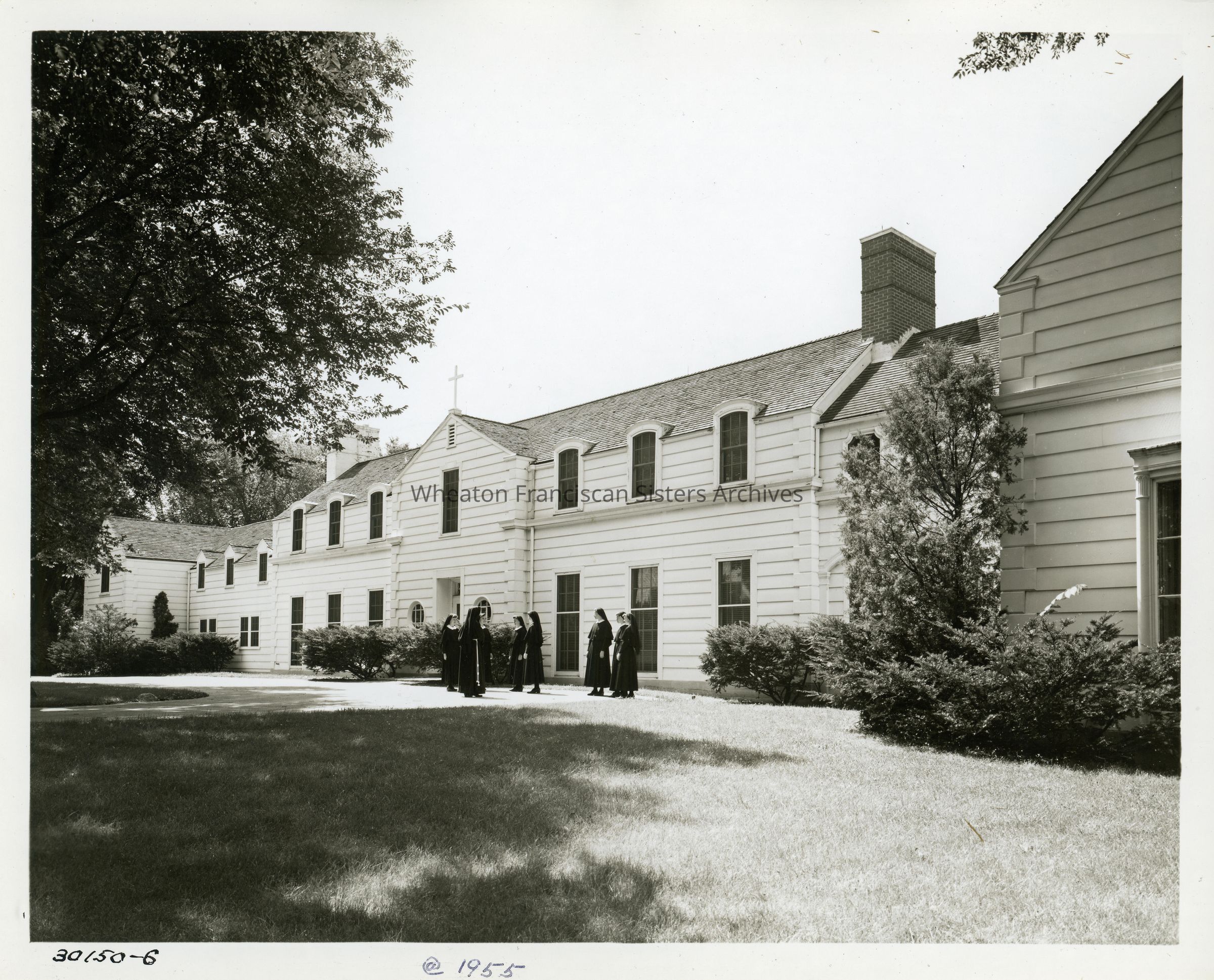In 1947, the Franciscan Sisters acquired a large tract of land in Wheaton which included this structure. From approximately 1947 - 1955, it was used by the Sisters as a motherhouse. Later, it was home to a novitiate, aspirancy, offices and more. Located northeast of the present-day OLA Motherhouse, the structure was demolished in 2013 after its condition had deteriorated.Context