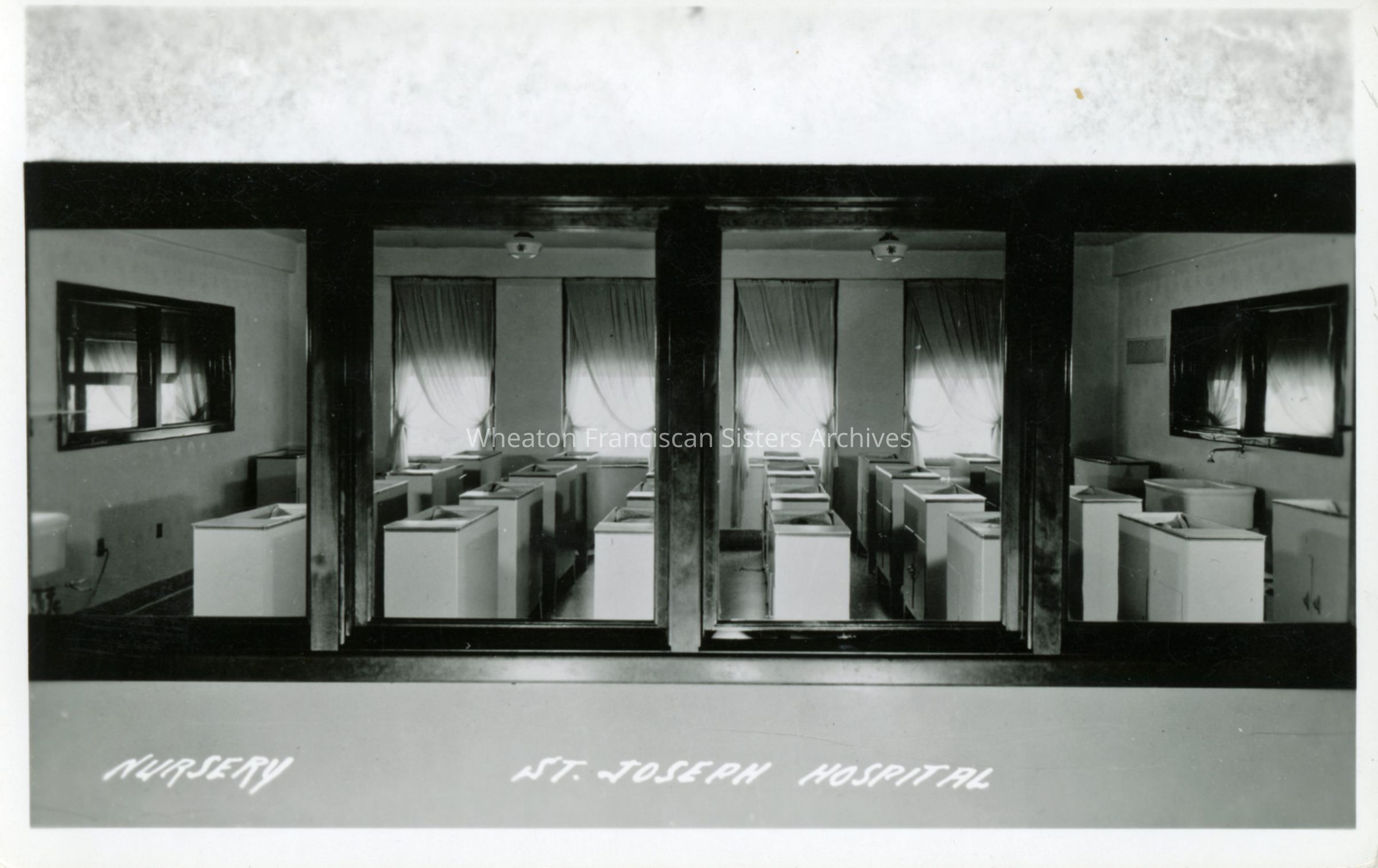 Postcard of St. Joseph's Hospital located at 5000 West Chambers Street in Milwaukee, Wisconsin. This image features the nursery.