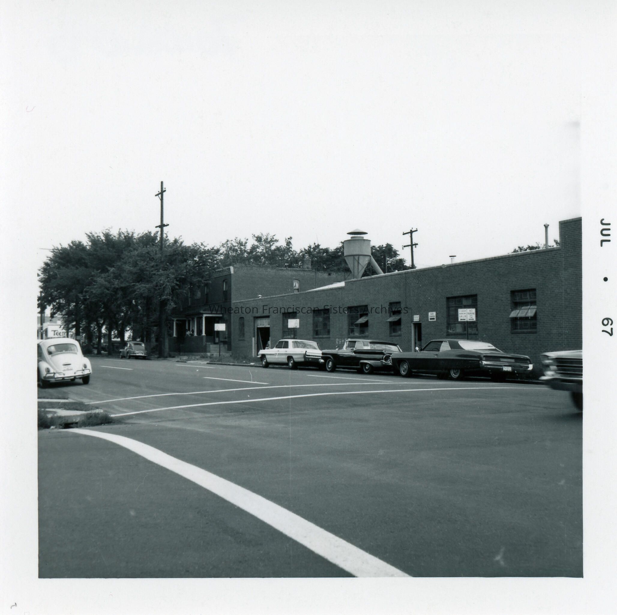 Property near the St. Rose Residence located at 952 10th Street in Denver, Colorado. A home for young working women, this image was taken around the time of its closure and features buildings on Champa Street. At different times, this location was known as St. Clara's Convent, St. Rose's Convent, St. Rosa's Home and was once the site of St. Clara's Orphanage.