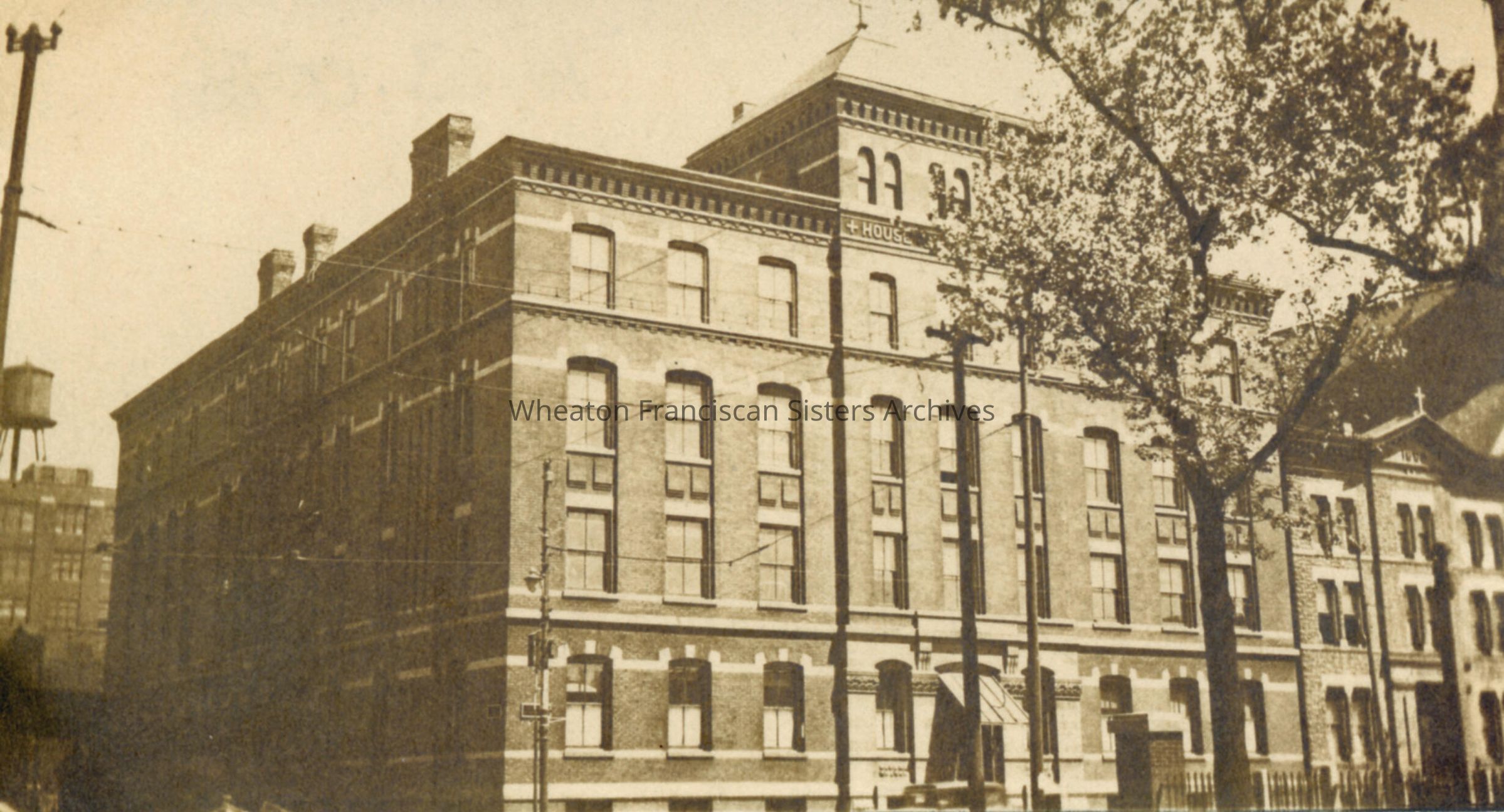 House of Providence located at 1121 North Orleans Street in Chicago, Illinois. St. Joseph's Priory and Church are on the far right.
