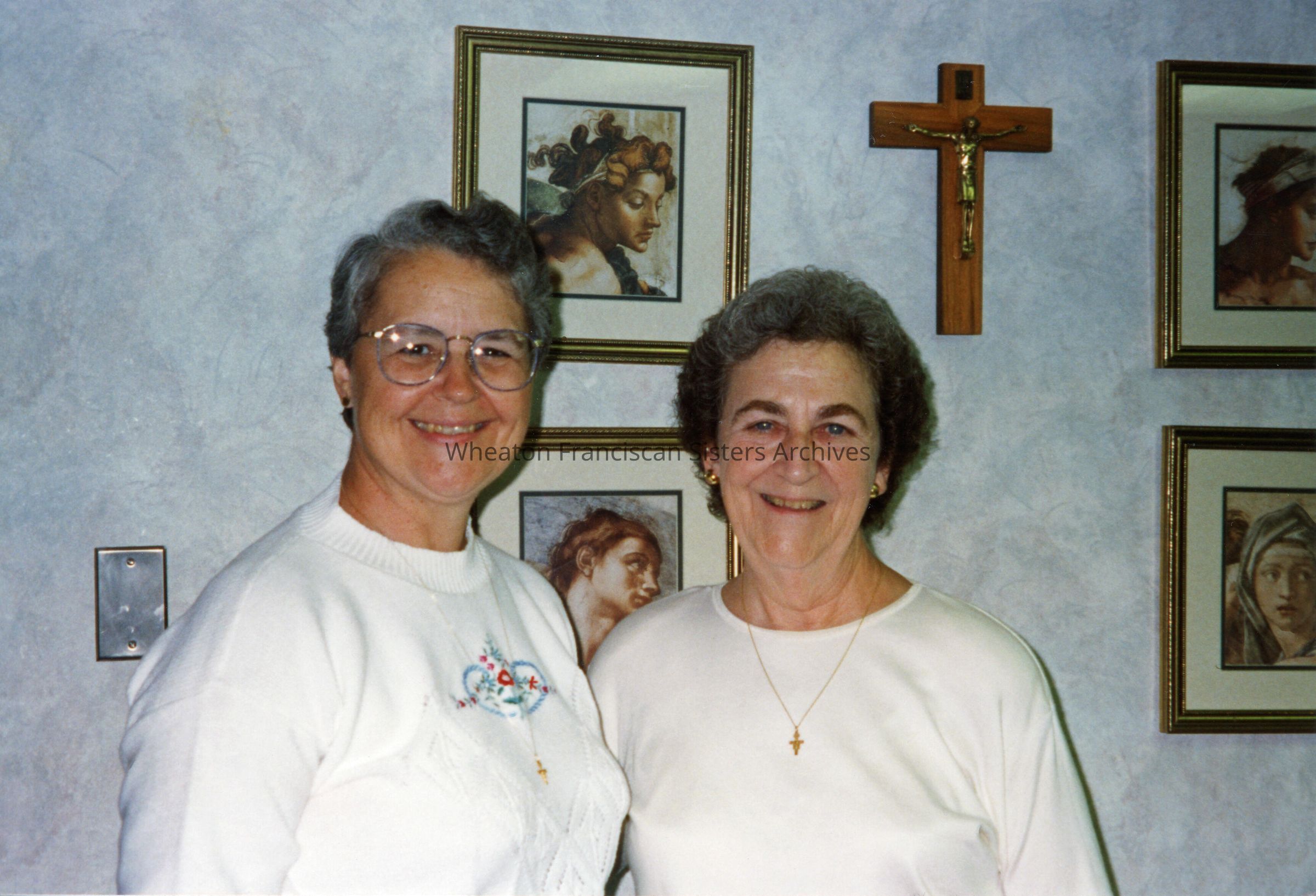 Oak Park Hospital located at 520 South Maple Avenue in Oak Park, Illinois. This image features Sister Rose Mary (Mathias) Pint (left) and Sister Elizabeth (Marina/Beth) Cosgrove (right).