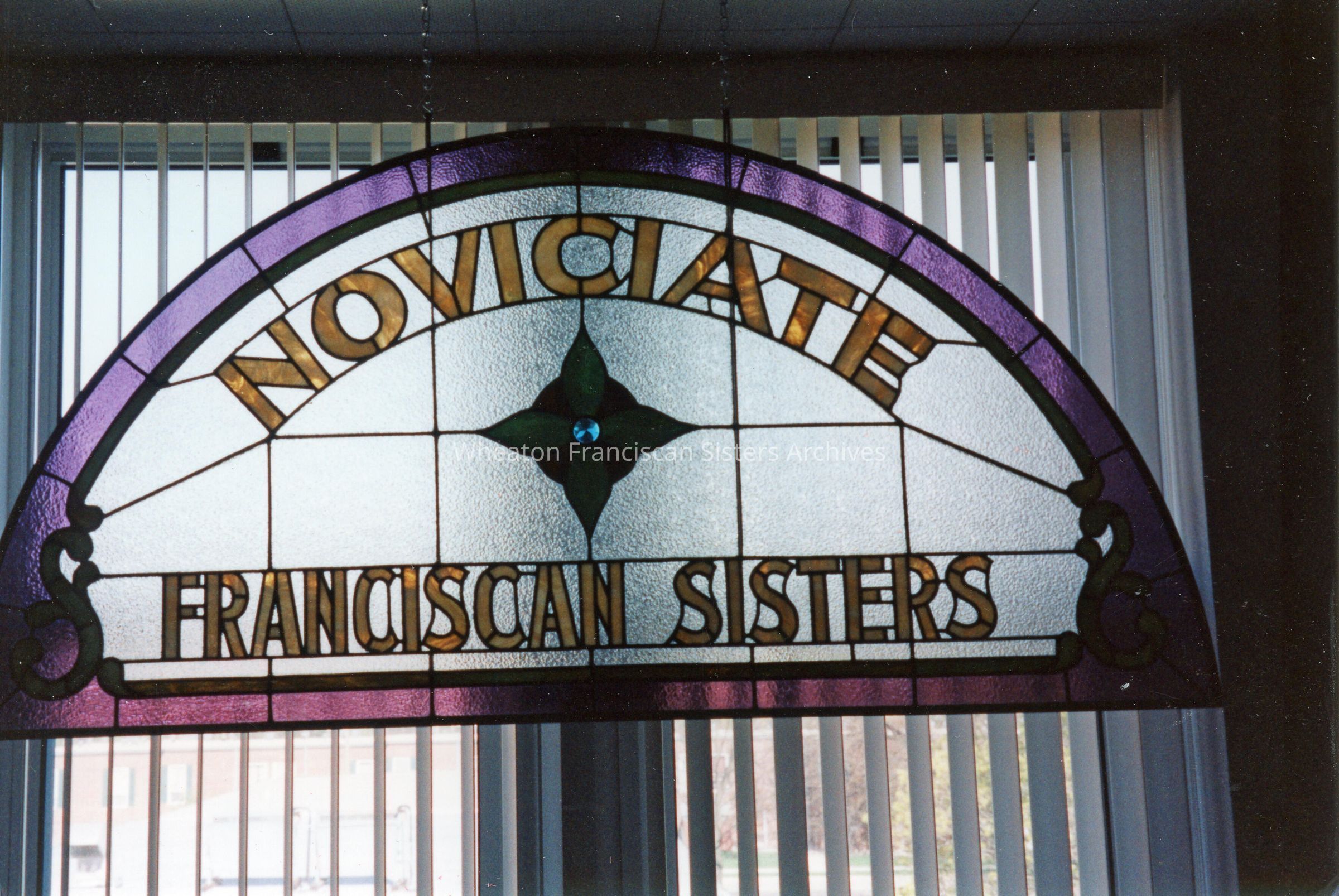 Stained glass window taken from the St. Anthony's Hospital Novitiate located at 3520 Chippewa Street in St. Louis, Missouri. The window is currently on display at the Our Lady of Angels Motherhouse in Wheaton, Illinois.
