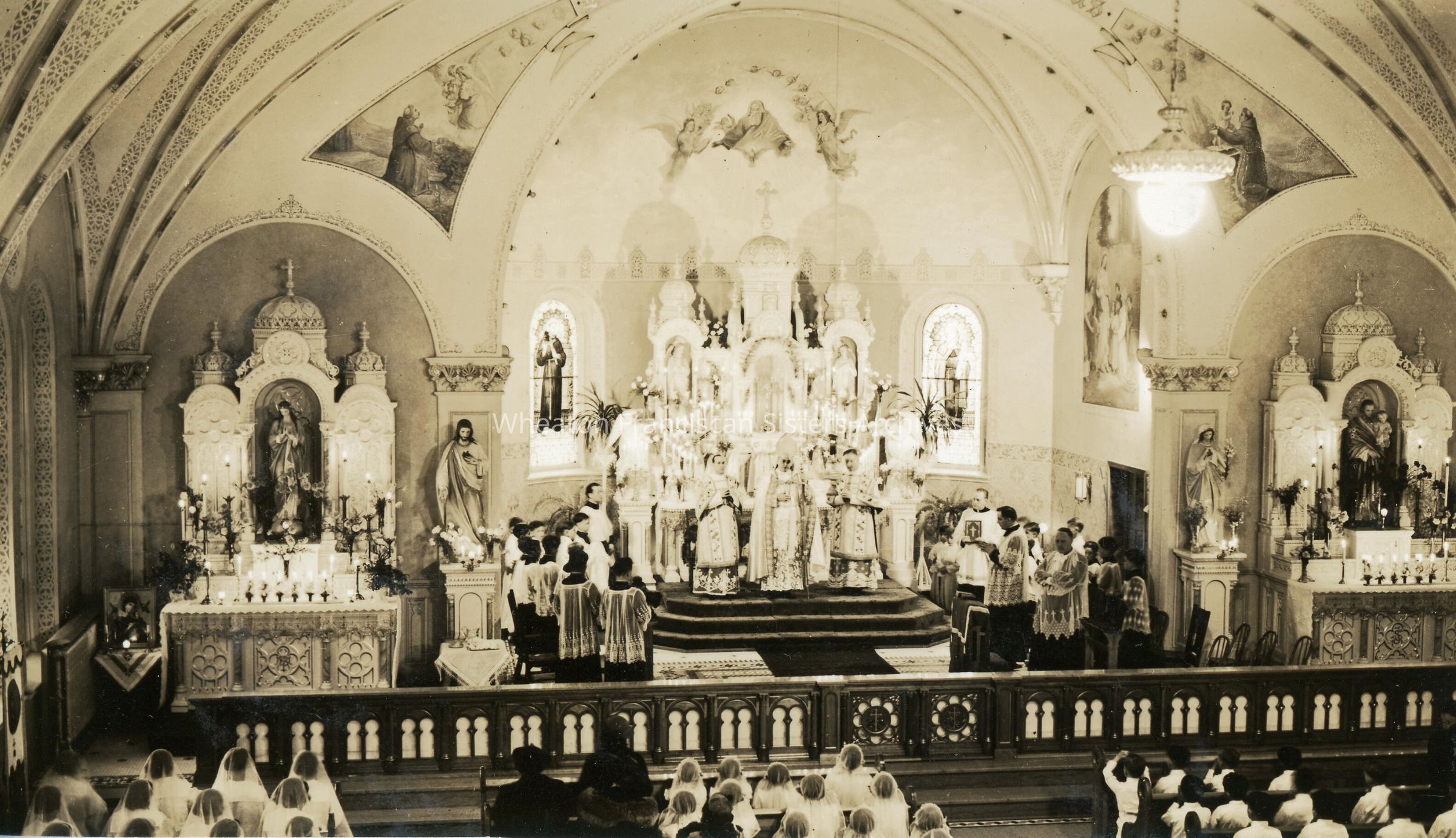 The chapel in St. Clara's Orphanage in Denver, Colorado. This image features Confirmation day.