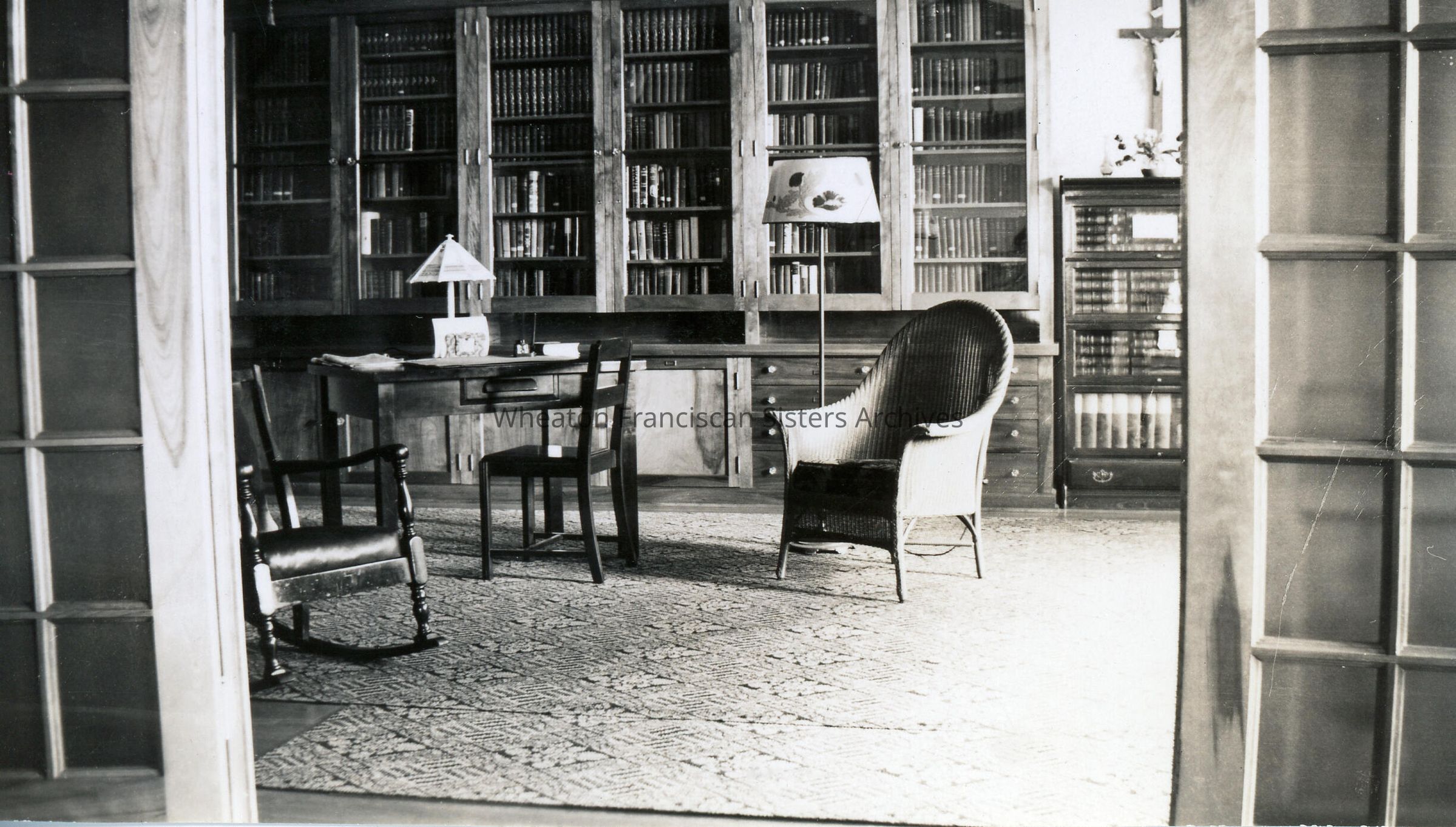 St. Rose Residence located at 952 10th Street in Denver, Colorado. A home for young working women, this image features the library. At different times, this location was known as St. Clara's Convent, St. Rose's Convent, St. Rosa's Home and was once the site of St. Clara's Orphanage.