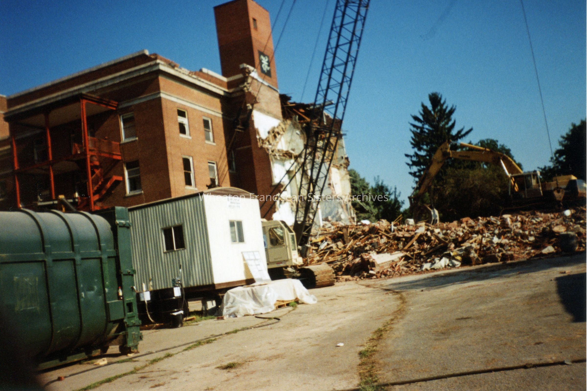 Demolition of St. Francis Hospital located at 825 Good Hope Street in Cape Girardeau, Missouri. Opened in 1914, this hospital replaced an older structure located at Sprigg and Williams Streets. St. Francis remained here until 1976 and the building was demolished in 2000. Affordable housing now occupies the site.