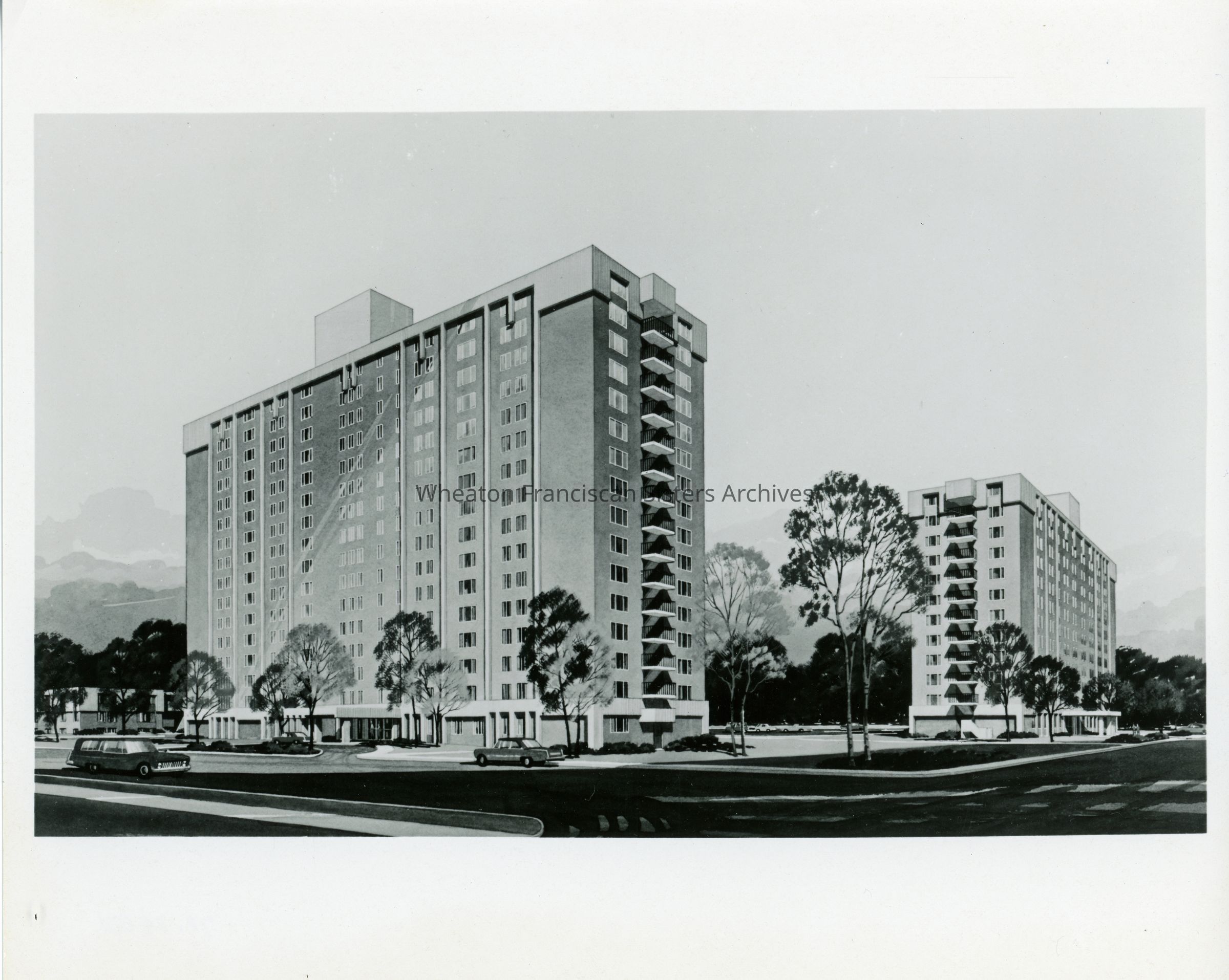 Situated near the former site of St. Clara's Orphanage, Francis Heights and Clare Gardens opened over the course of 1972 and 1973. Created as affordable housing for seniors and families, the complex offered more than four hundred apartments and townhomes. The Franciscan Sisters sponsored the ministry until a transfer to Mercy Housing in 2016.Context