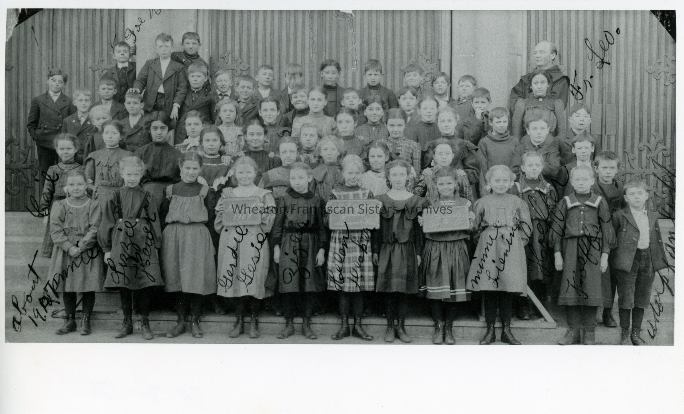 St. Elizabeth's School located in Denver, Colorado. This image features the third and fourth grade classes with Father Leo Heinrichs. The school was part of the St. Elizabeth of Hungary Parish.