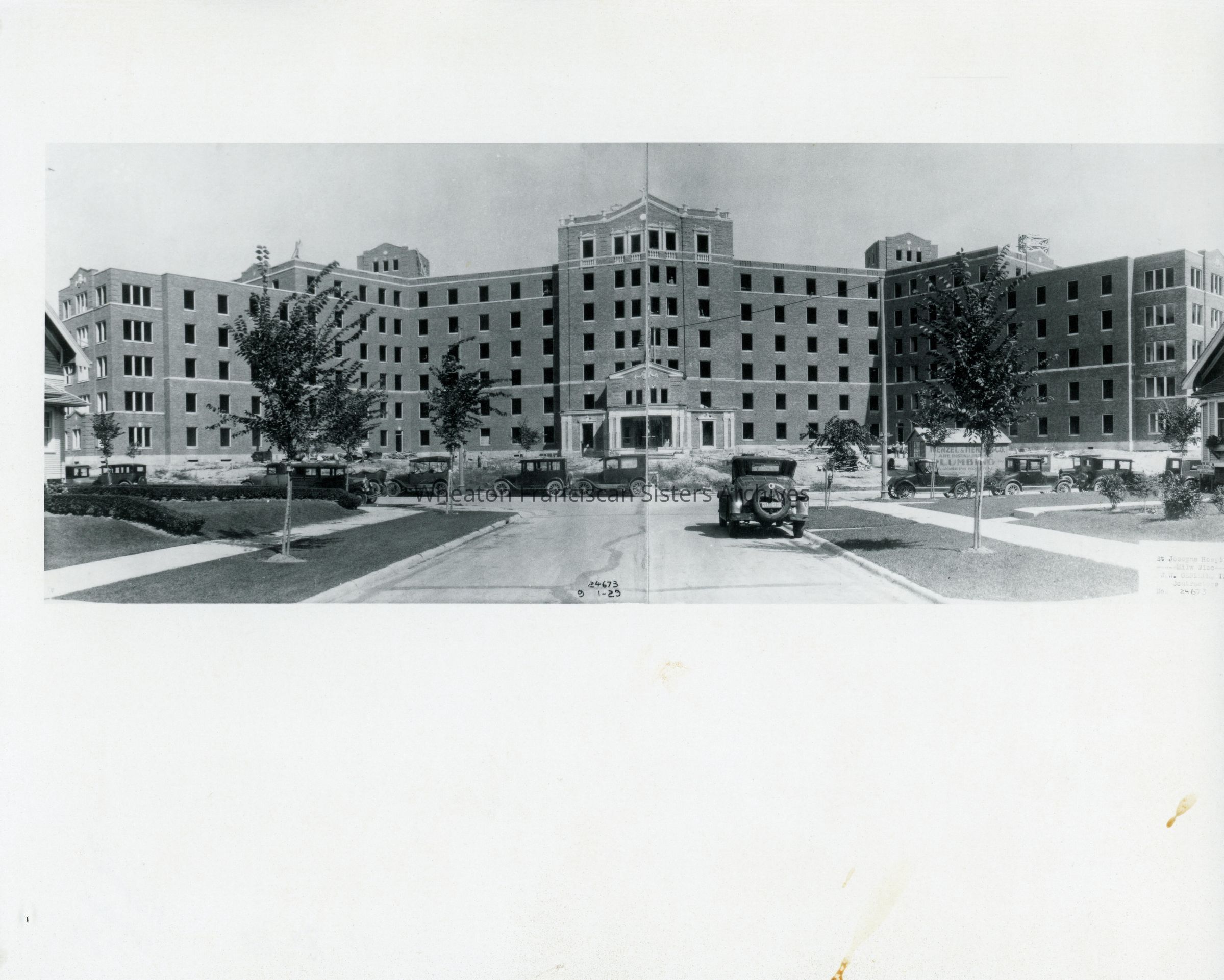 Construction of St. Joseph's Hospital located at 5000 West Chambers Street in Milwaukee, Wisconsin. The contractor is listed as W. W. Oeflein Inc.