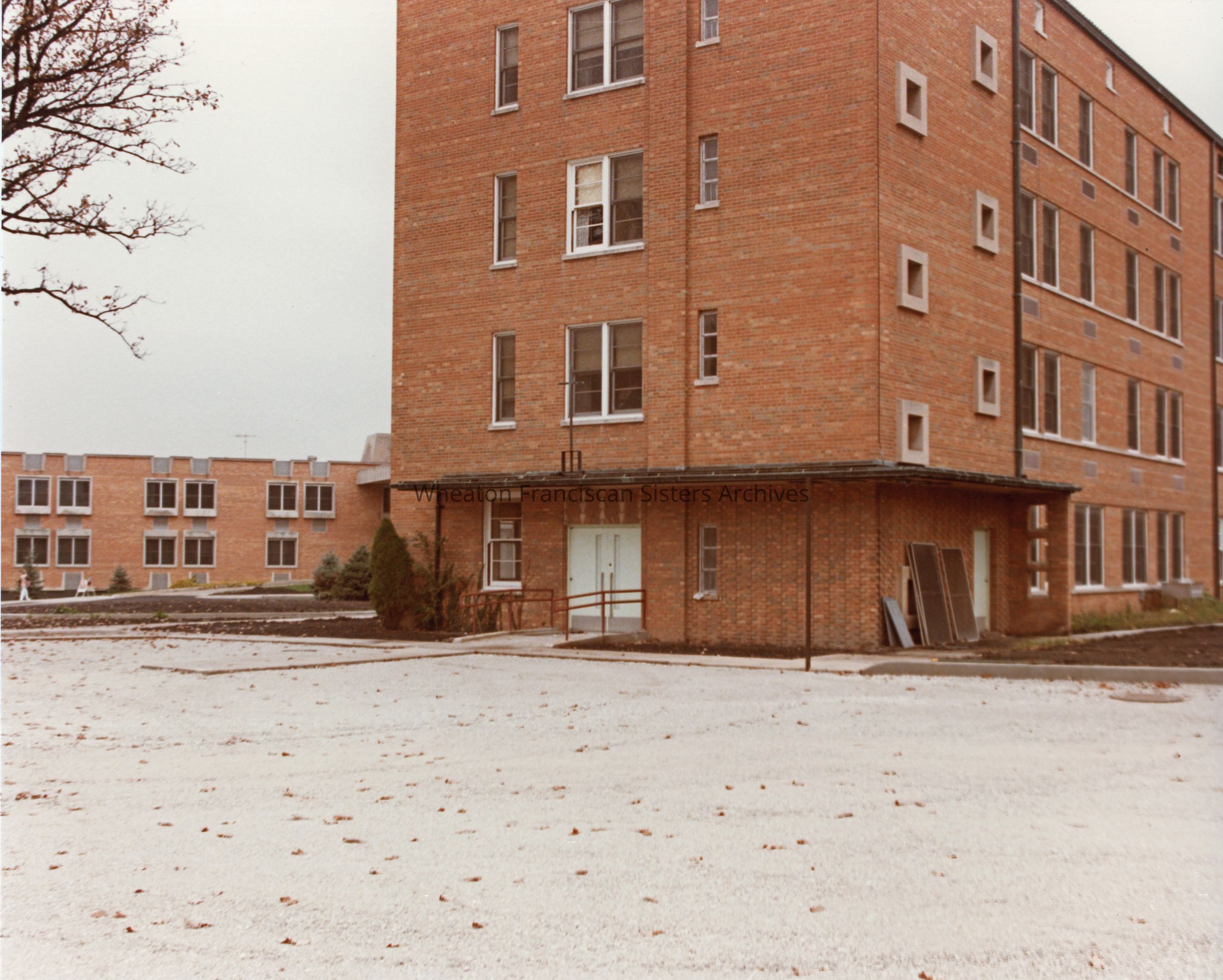 The Our Lady of Angels Motherhouse at 26W171 Roosevelt Road in Wheaton, Illinois. This image features clinics and the entrance to Marianjoy Rehabilitation Hospital. The building in the center formerly served as the novitiate.