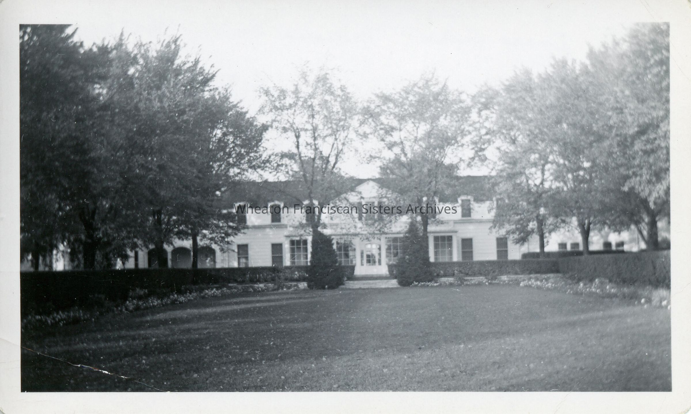 In 1947, the Franciscan Sisters acquired a large tract of land in Wheaton which included this structure. From approximately 1947 - 1955, it was used by the Sisters as a motherhouse. Later, it was home to a novitiate, aspirancy, offices and more. Located northeast of the present-day OLA Motherhouse, the structure was demolished in 2013 after its condition had deteriorated.Context