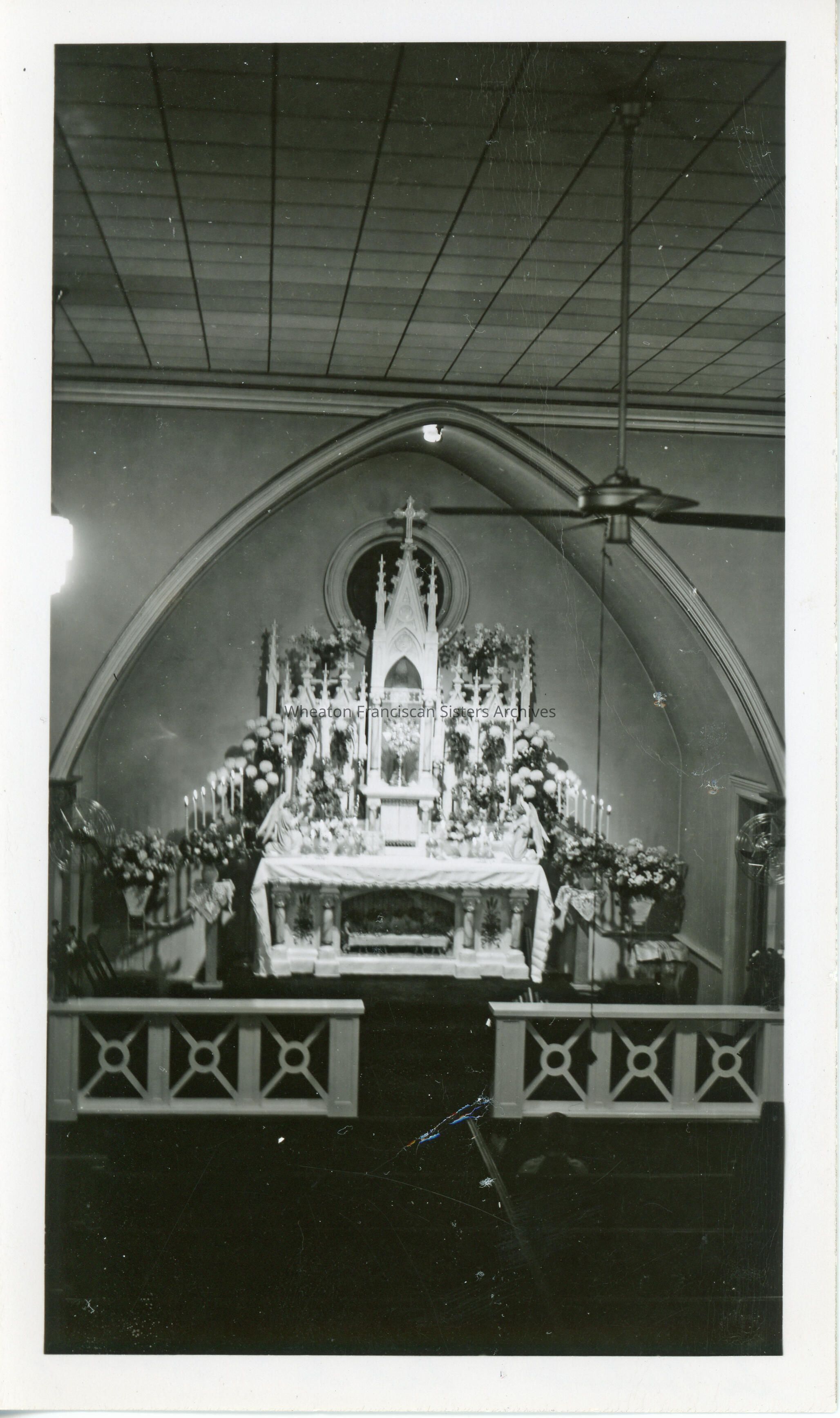 Transfiguration Church located at 217 South Church Street in Wauconda, Illinois. This image features the altar. Built around 1875, the white frame building later served as a meeting hall.