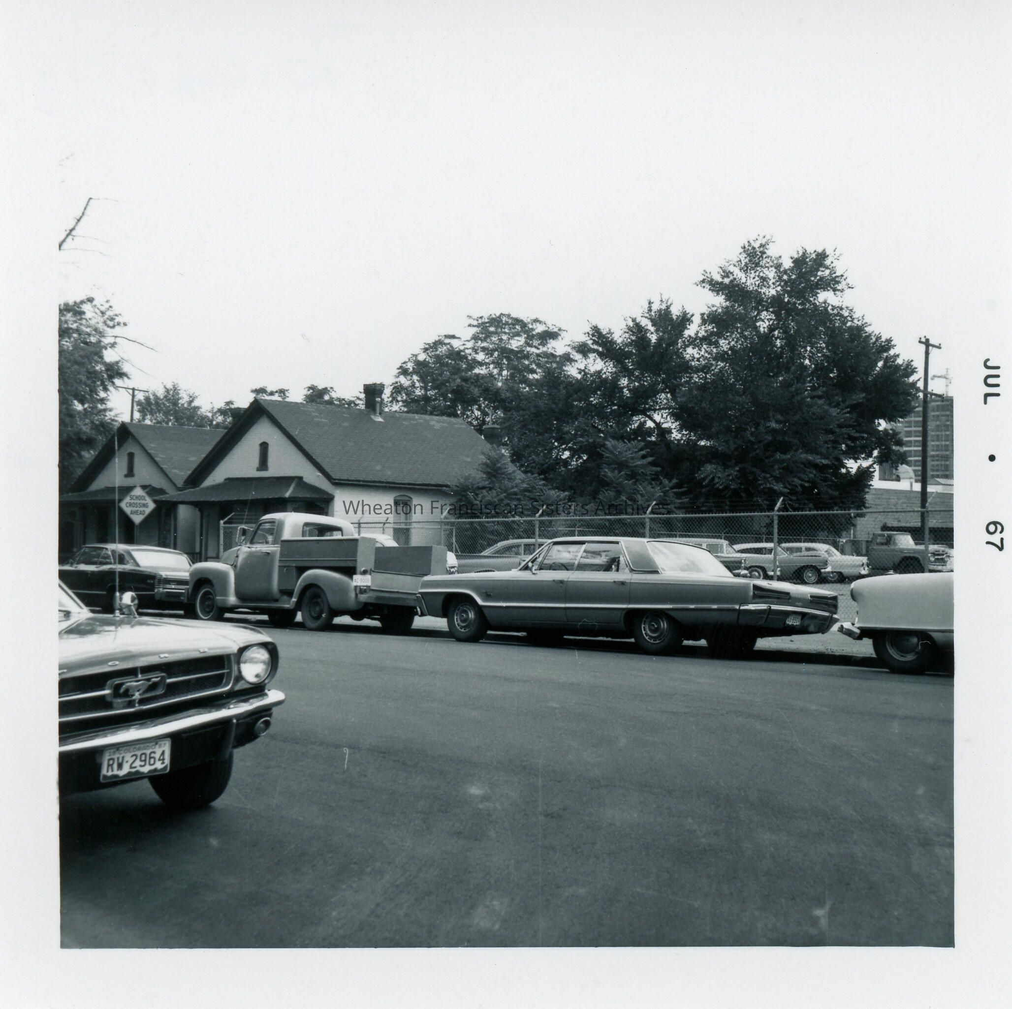 Property near the St. Rose Residence located at 952 10th Street in Denver, Colorado. A home for young working women, this image was taken around the time of its closure and features buildings on 10th Street. At different times, this location was known as St. Clara's Convent, St. Rose's Convent, St. Rosa's Home and was once the site of St. Clara's Orphanage.
