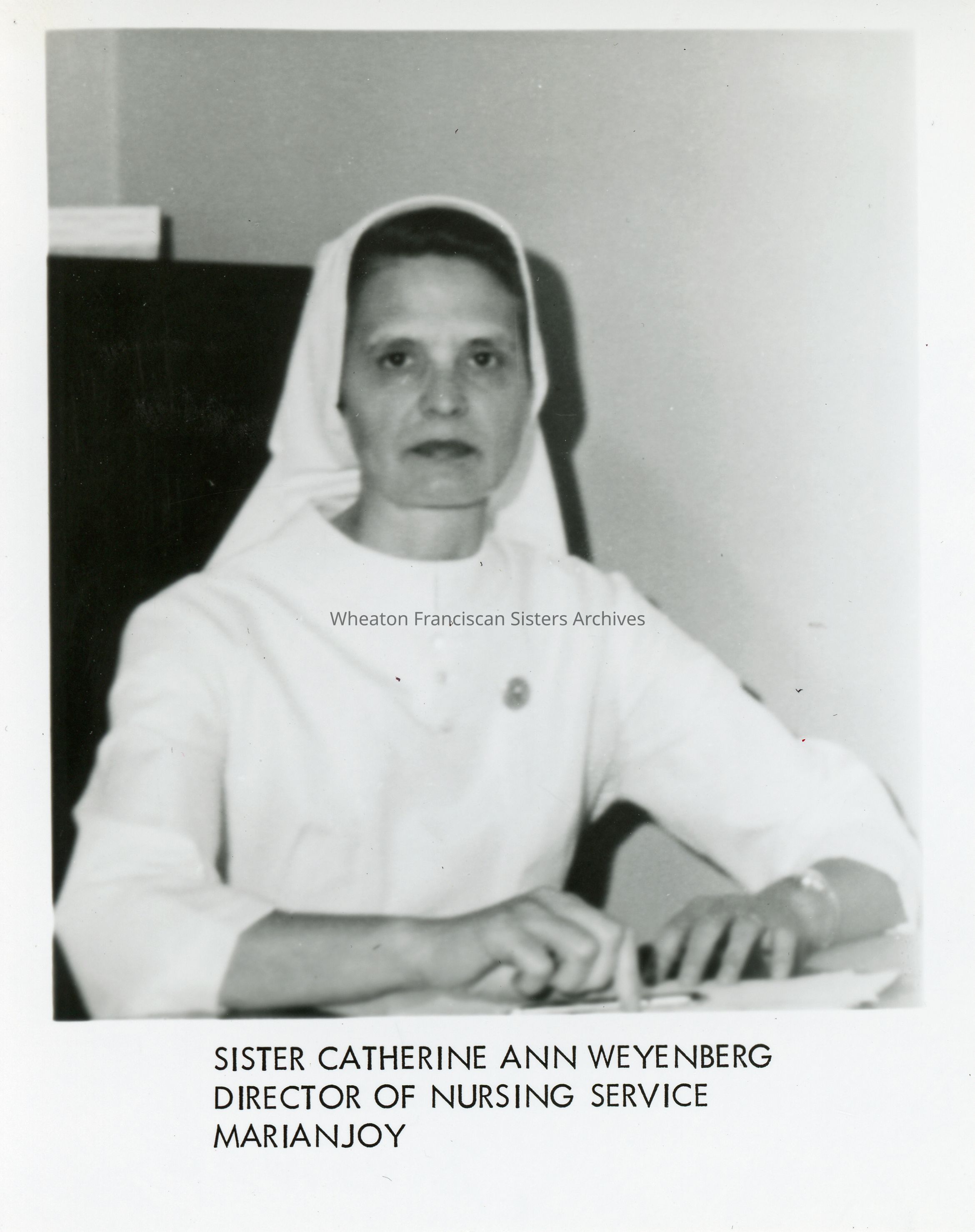 Sister Catherine Anna (Dorothy/Catherine Ann) Weyenberg, Director of Nursing Service at Marianjoy Rehabilitation Hospital in Wheaton, Illinois.